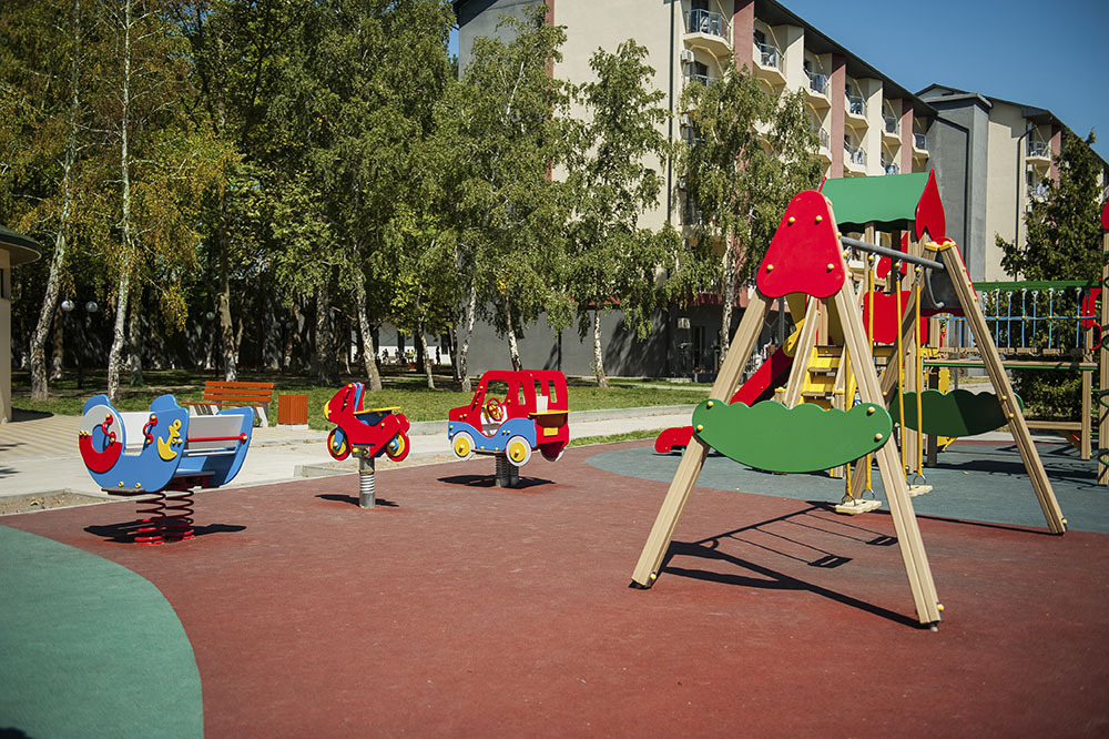 - Все условия для размещения и питания с маленькими детьми: для детей до 5-ти лет отдельное меню на шведской линии и в кафе; бесплатный прокат детских кроваток, колясок, стульчиков, горшков; самая гибкая система скидок для детей на основных местах и на дополнительных. Питание для сторонников вегетарианского питания.
