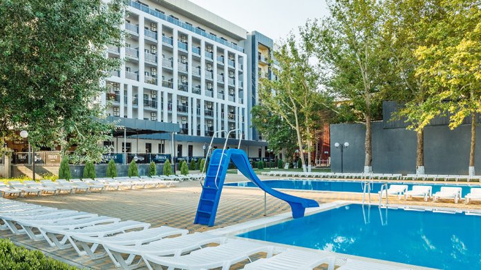 - Собственный аквапарк с разнообразием взрослых и детских горок, Ленивой рекой и Spray – парком, общей площадью более 5000 кв.метров.