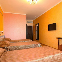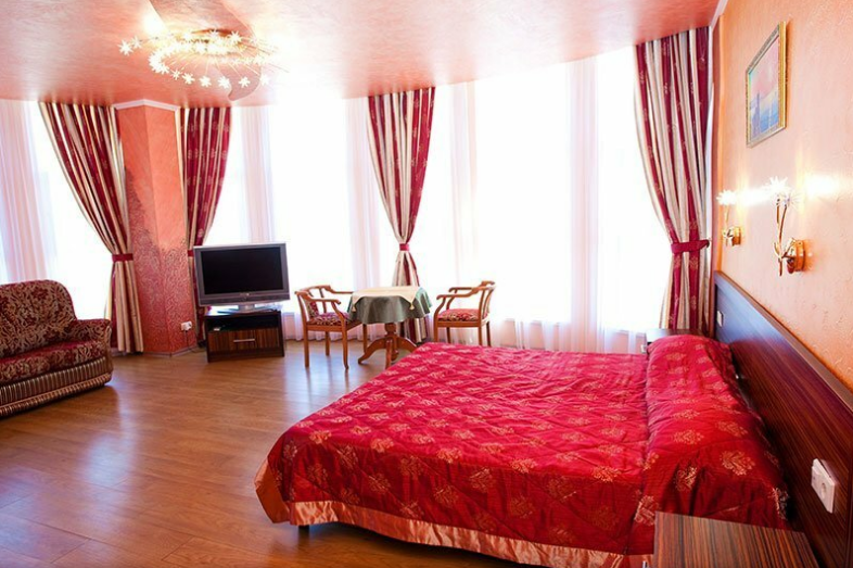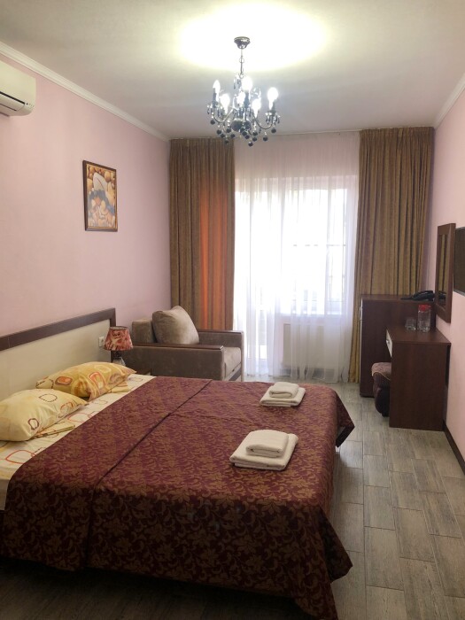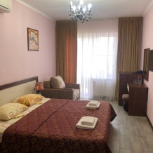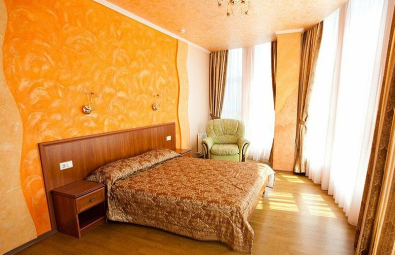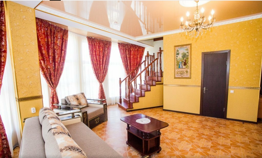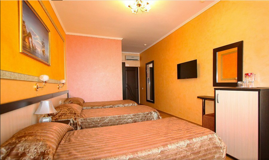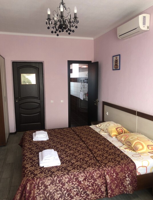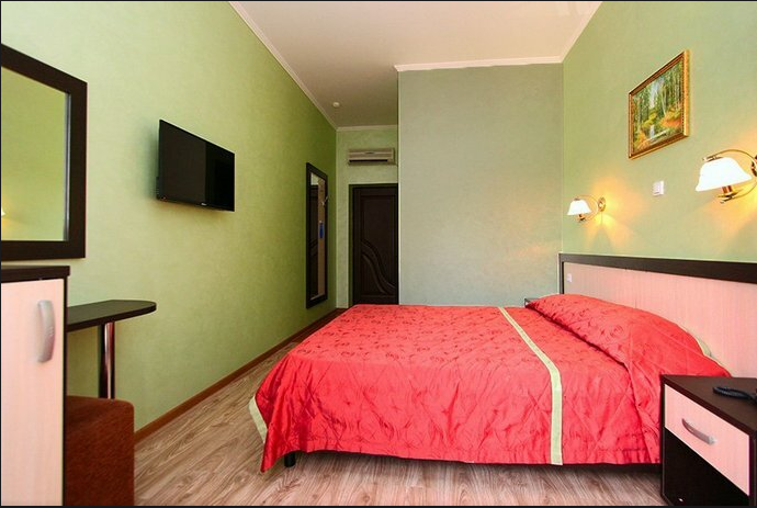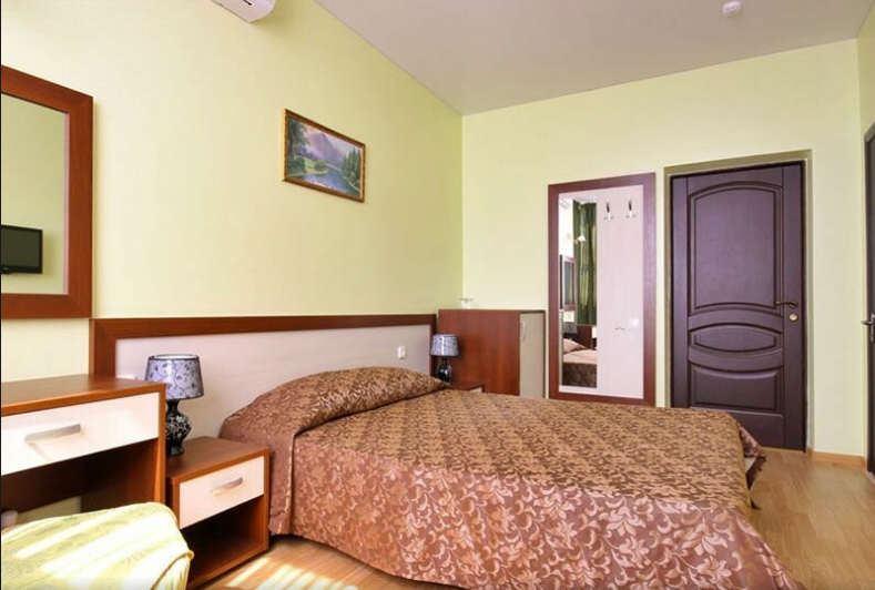 Все номера оборудованы современной и высококачественной мебелью, отделка выполнена по эксклюзивному дизайнерскому решению с применением новейших материалов. В номерах бесперебойная подача горячей и холодной воды. На всей территории гостевого дома работает бесплатный Wi-Fi интернет.