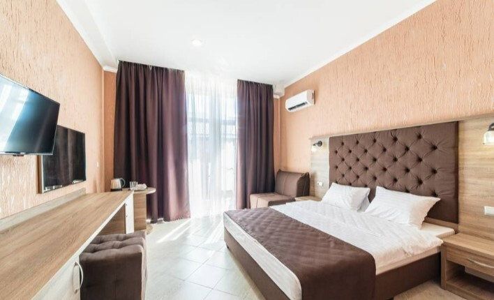Для проживания гостям предлагаются уютные номера разной вместимости, со всем необходимым для комфортного отдыха. Для маленьких постояльцев у нас предусмотрена анимация три раза в неделю. Во дворе отеля подогреваемый бассейн с зоной для загара и качели с горкой для детей. В шаговой доступности от отеля есть магазины, кафе и развлечения для детей.