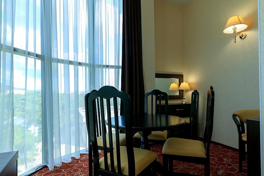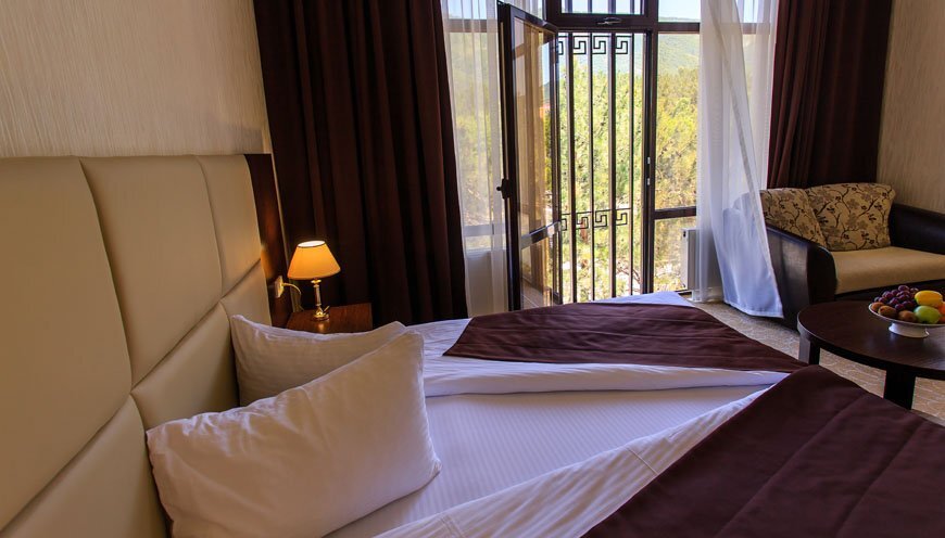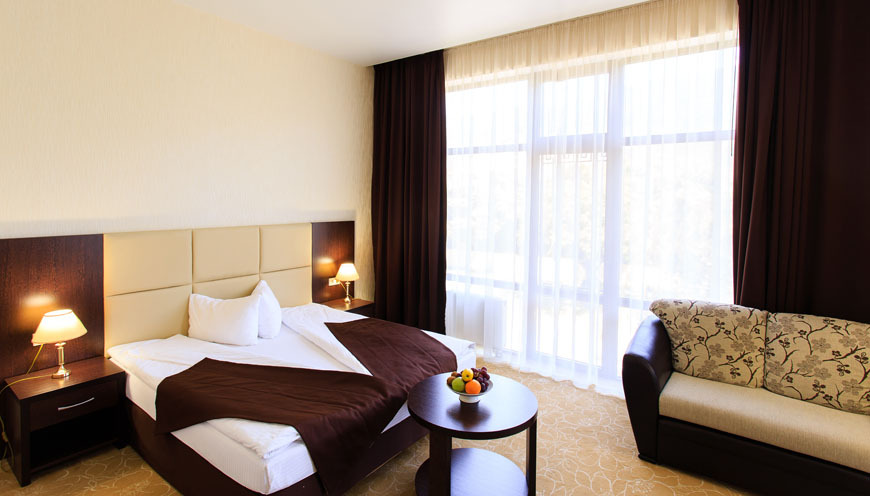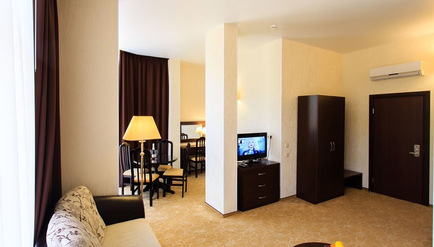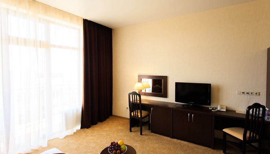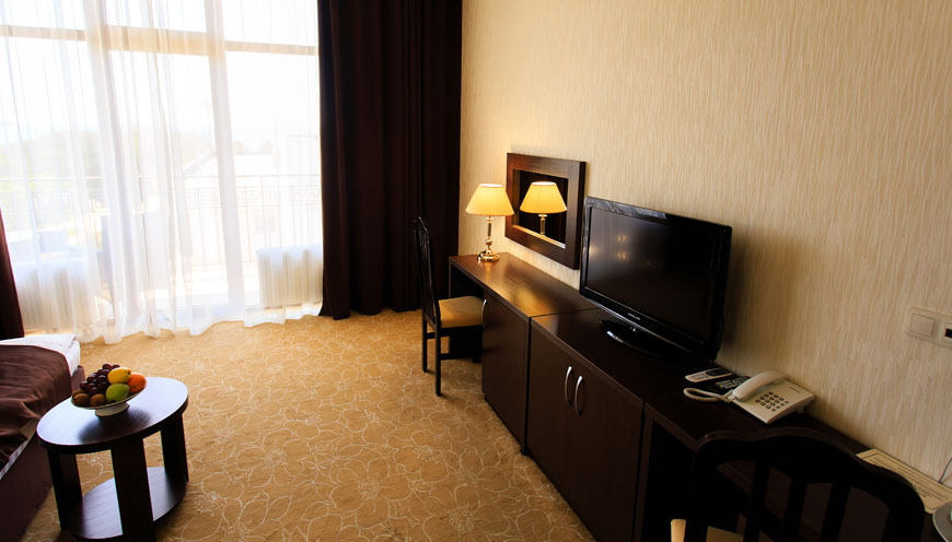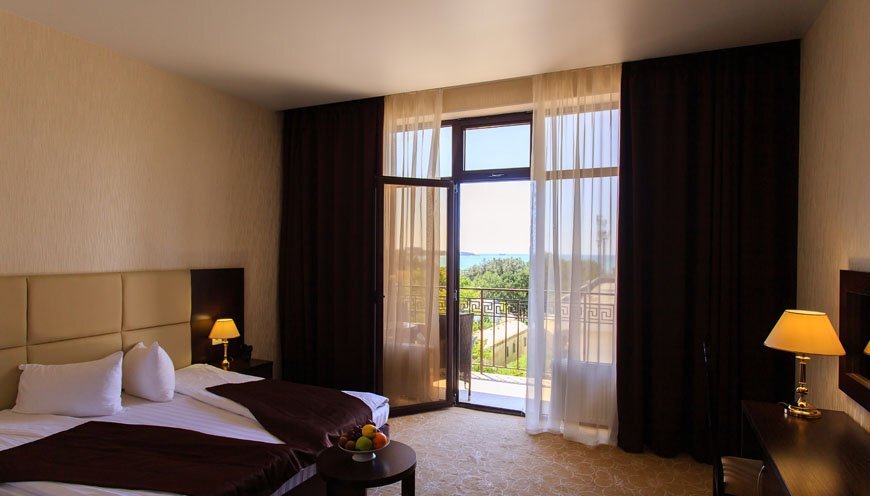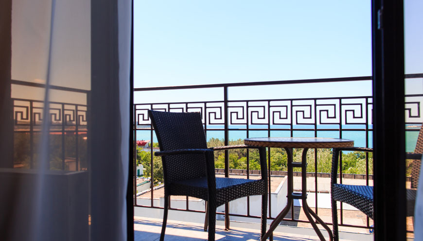 К услугам гостей размещение в спроектированных по европейскому стандарту номерах, из окон которых открывается прекрасный панорамный вид на море и горы. Вашему вниманию представлены номера классов Стандарт, Студия и Люкс. Вне зависимости от выбранной категории номера, Вы будете приятно удивлены современным оснащением номера, где есть все необходимое для отдыха: электронный замок, сейф, питьевая вода, фен, халат, тапочки, туалетные принадлежности, бесплатный Wi-Fi.