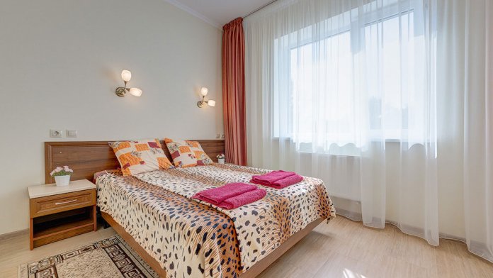 Номер оборудован двуспальной кроватью или двумя отдельно стоящими односпальными кроватями.