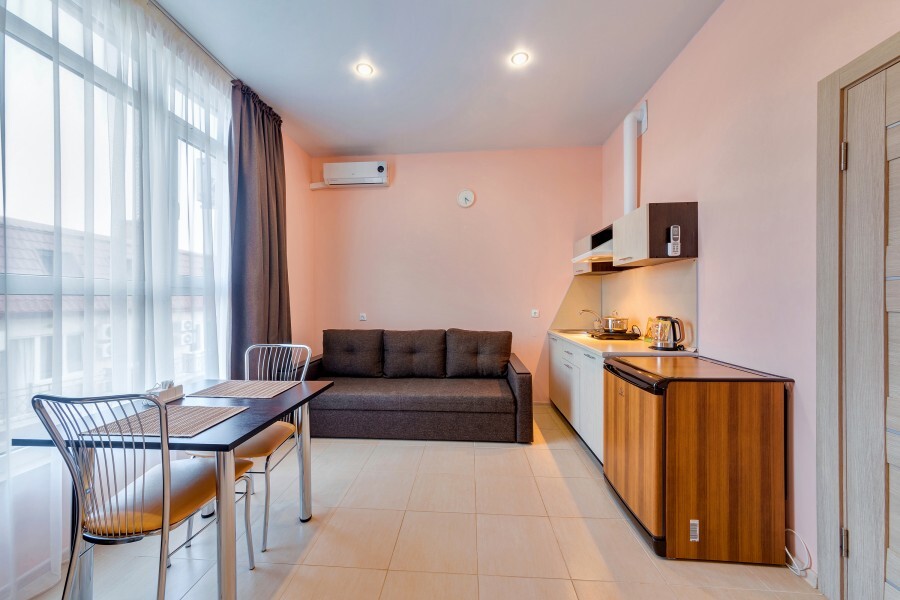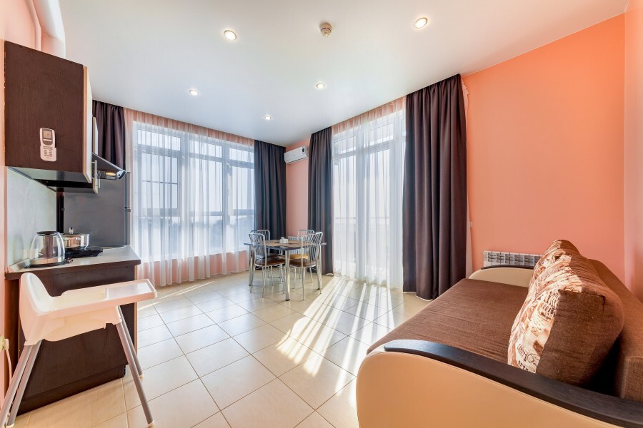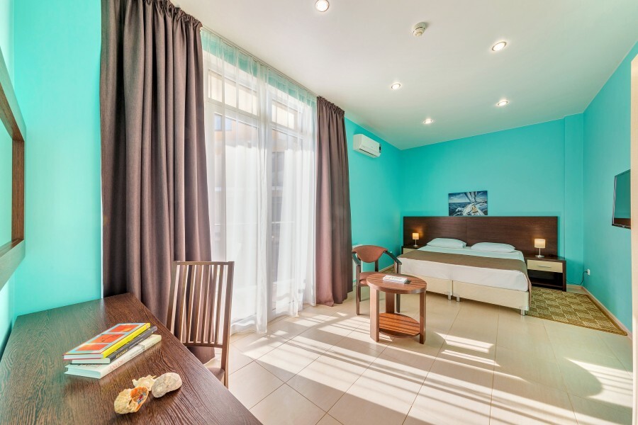 Рядом с отелем находятся магазины, кафе и столовые, автобусная остановка, современная детская и спортивная площадка, в 300 метрах полностью оборудованный благоустроенный галечный пляж.