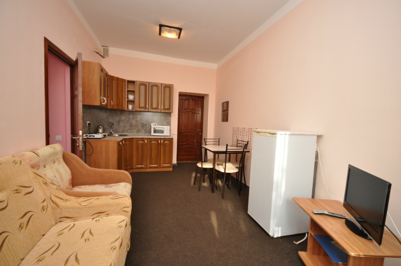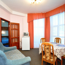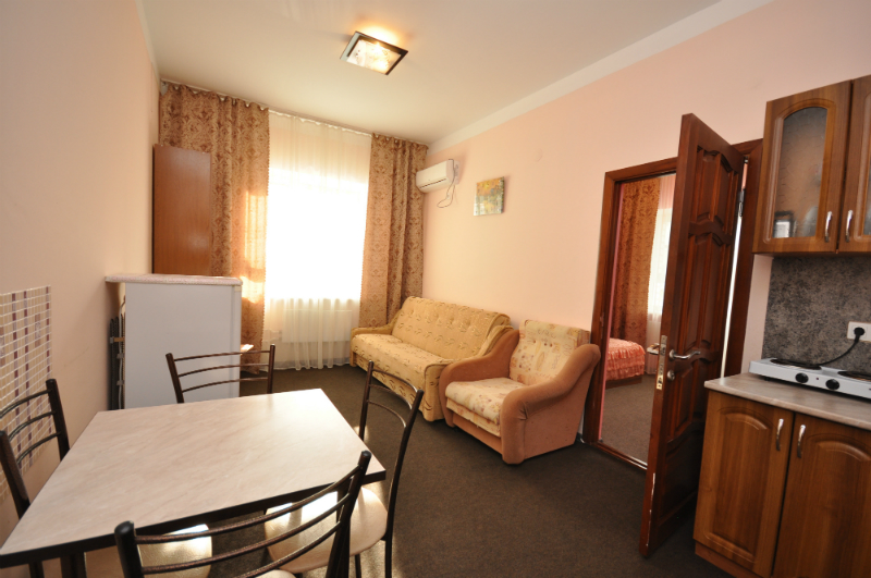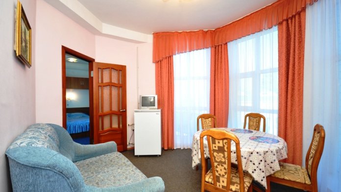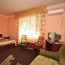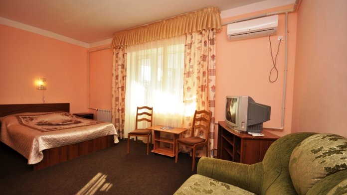 Современный 4-этажный корпус насчитывает 17 номеров категорий «стандарт», «комфорт», «люкс» и «vip», в которых может с удобством разместиться до 60 человек. Каждый номер оснащен всеми необходимыми удобствами - новой мебелью, индивидуальным санузлом, сплит-системой, интернетом Wi-Fi.