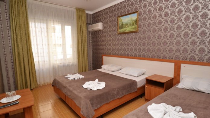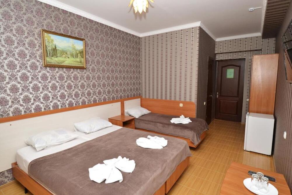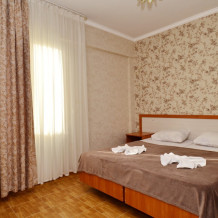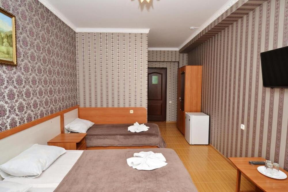 Для проживания гостям предлагаются номера со всеми удобствами, разных категорий и вместимости. Уборка номеров и смена белья осуществляется 1 раз в 3 суток.