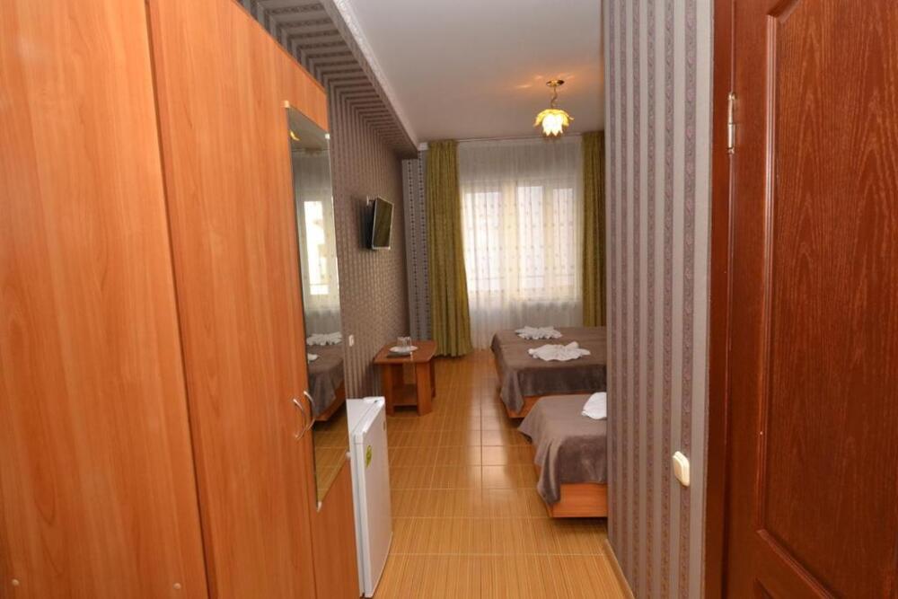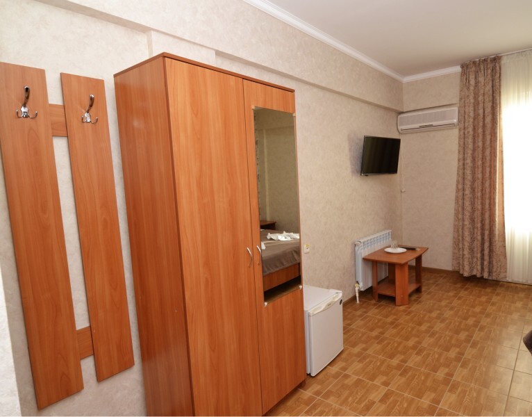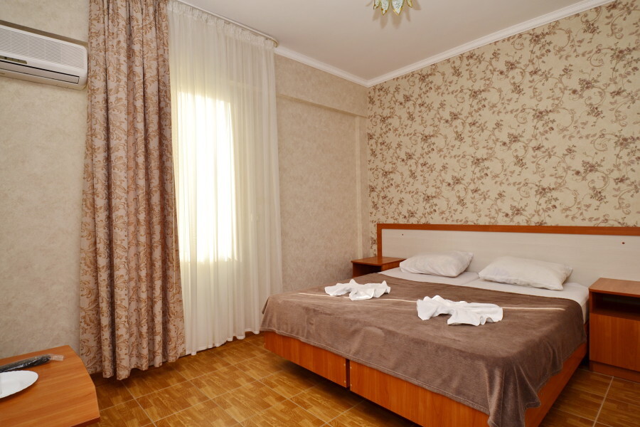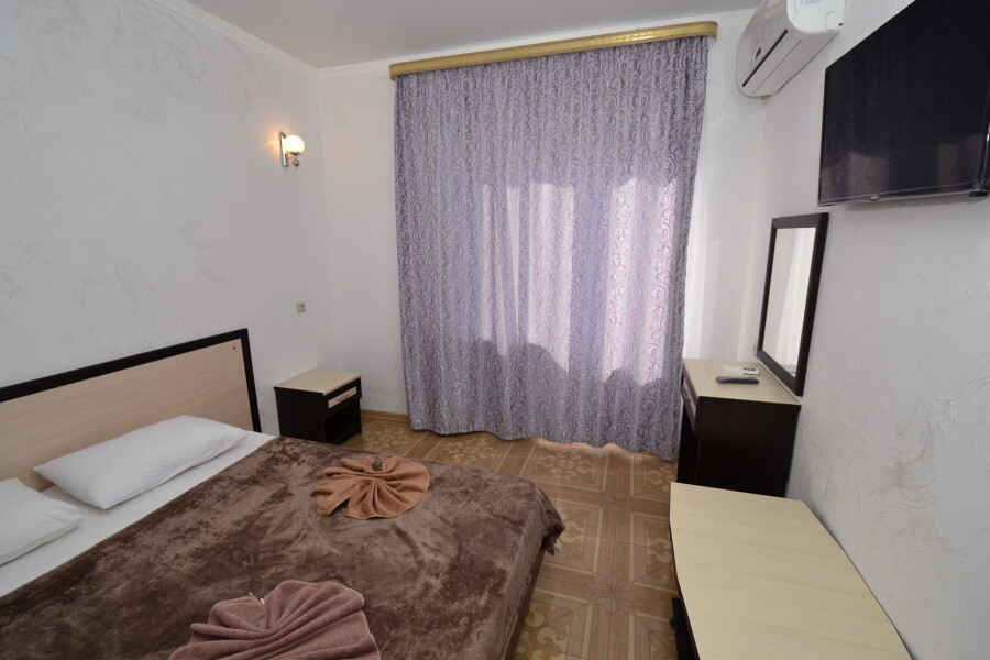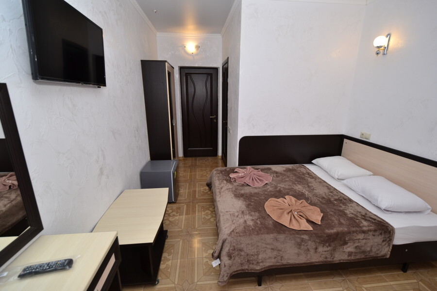В номере: двуспальная кровать или 2 односпальные кровати, прикроватные тумбочки, шкаф для одежды, жк телевизор, сплит-система, холодильник, стол, зеркало. Есть своя отдельная ванная комната с санузлом, где душ, туалет, фен (по требованию), ванные принадлежности (мыло и туалетная бумага), полотенца лицевые и банные. Так же в каждом номере есть стол и стулья на балконе. По запросу выдаем чайник. Номера находятся как на 1 этаже, так и на 2 этаже, на 3 этаже, на 4 этаже. Этажность при заселении по факту, не по запросу.