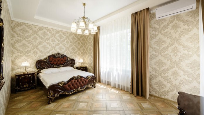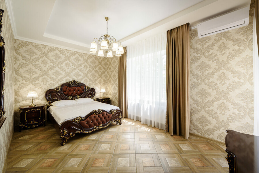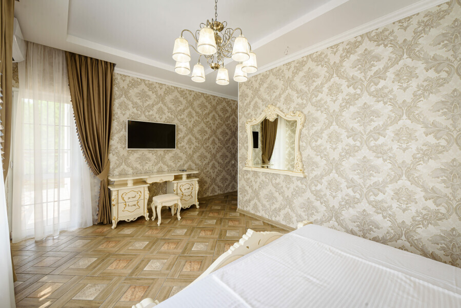 Двухспальная кровать размера «king size», шкаф для одежды, рабочий стол, кресло, кондиционер, москитные сетки, спутниковое TV, бесплатный wi-fi.