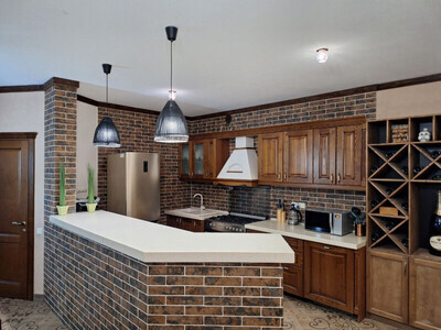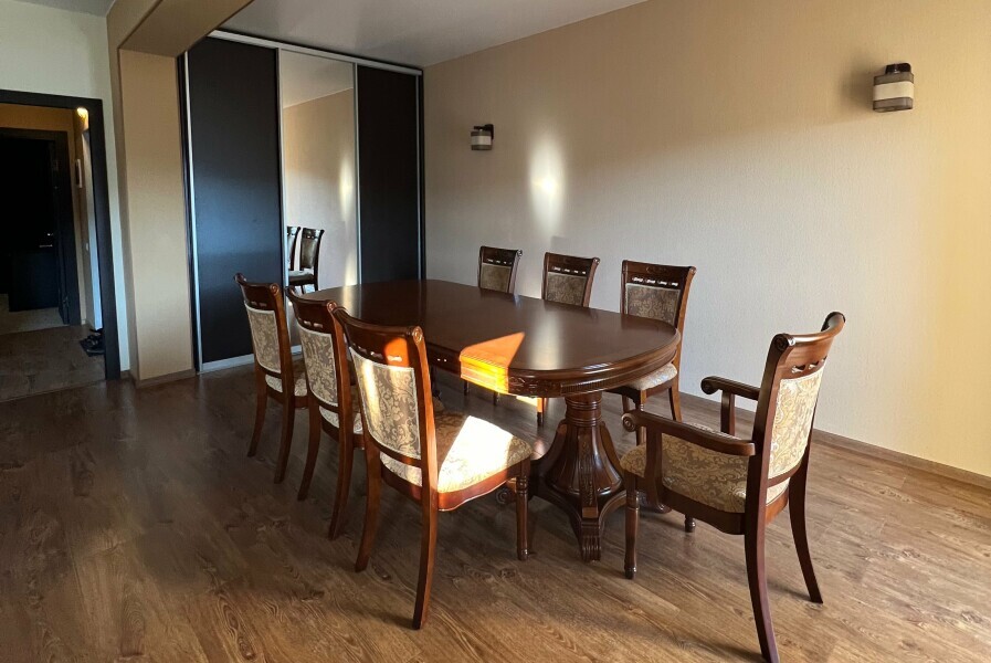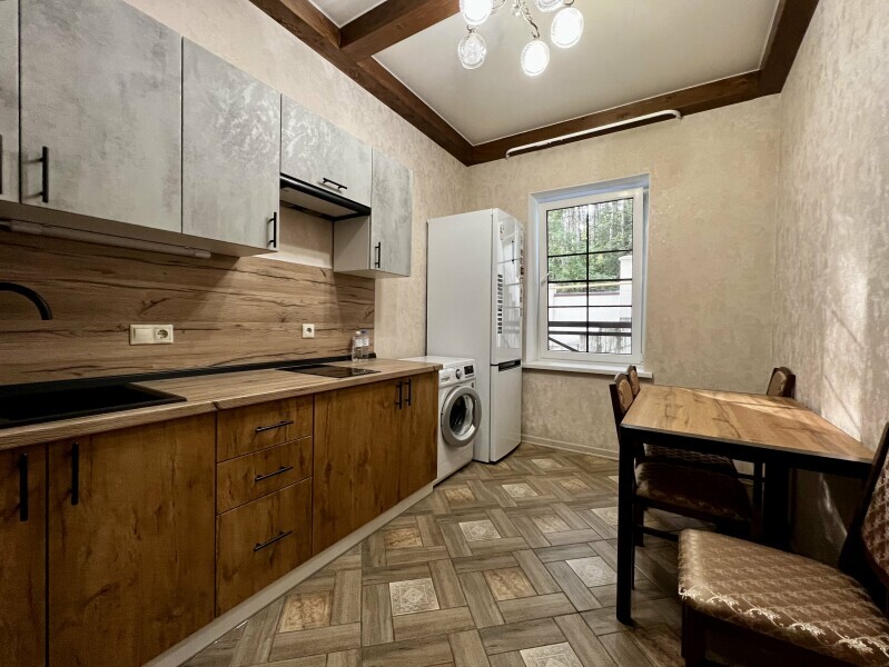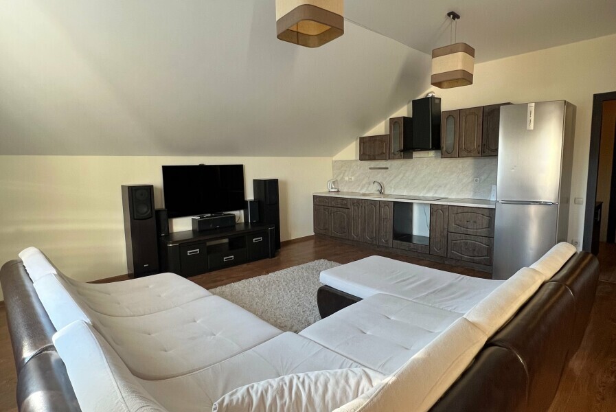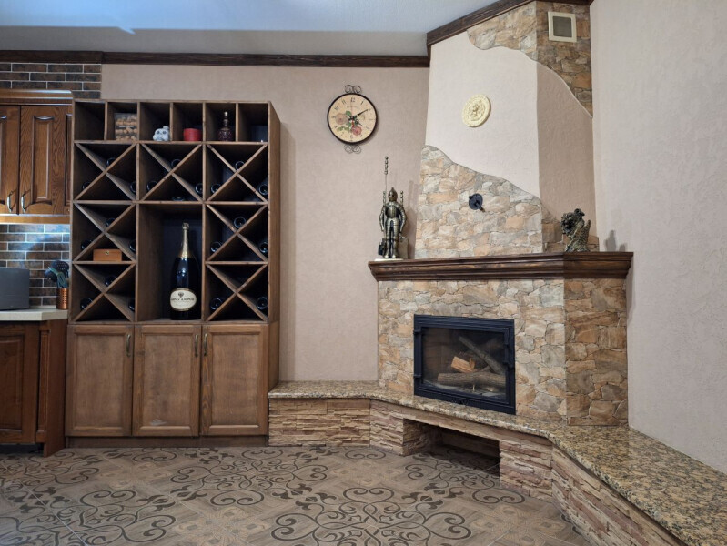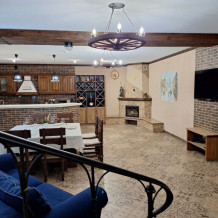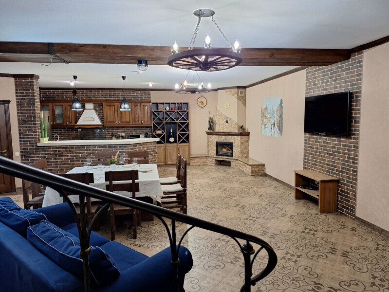 Просторная гостиная-столовая с комфортной зоной отдыха, камином и обеденным столом. Полностью оборудованная кухня со всей необходимой техникой и посудой позволяет с легкостью готовить любимые блюда и завтракать в своем ритме.