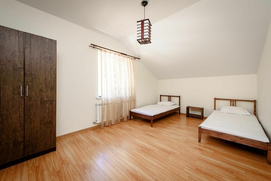 На втором этаже - две отдельные спальные комнаты с двуспальной кроватью гарантируют личное пространство и спокойный отдых для всех гостей, санузел с душевой кабиной, стиральной машиной, туалетными принадлежностями.