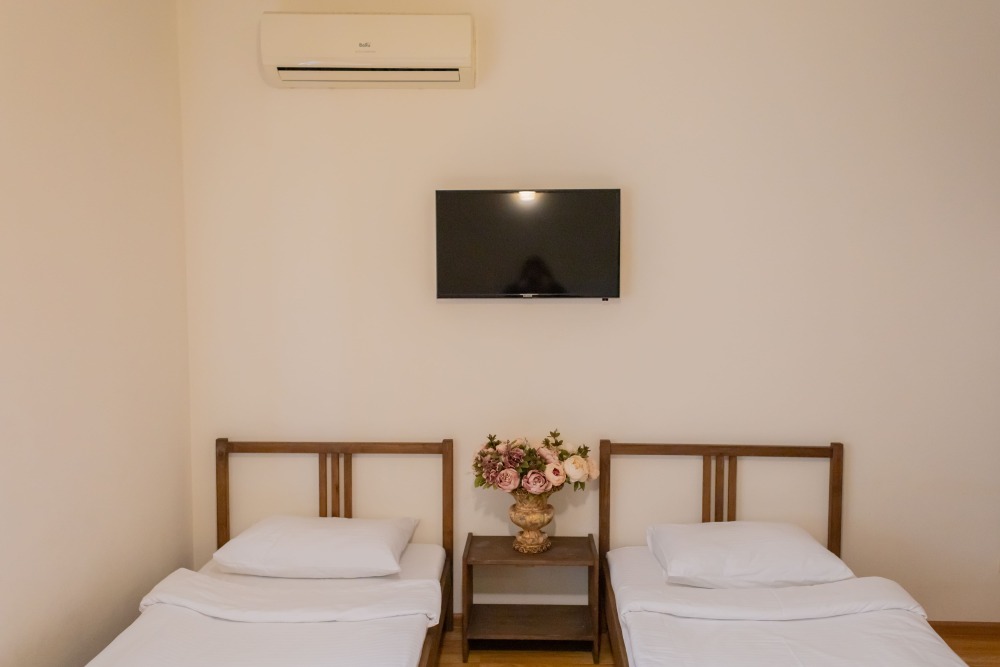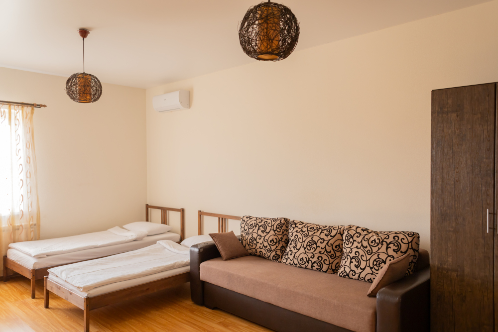 В номере: 2 раздельные односпальные кровати, двухместный раскладной диван, шкаф для одежды, кондиционер, москитные сетки, спутниковое TV, бесплатный wi-fi.