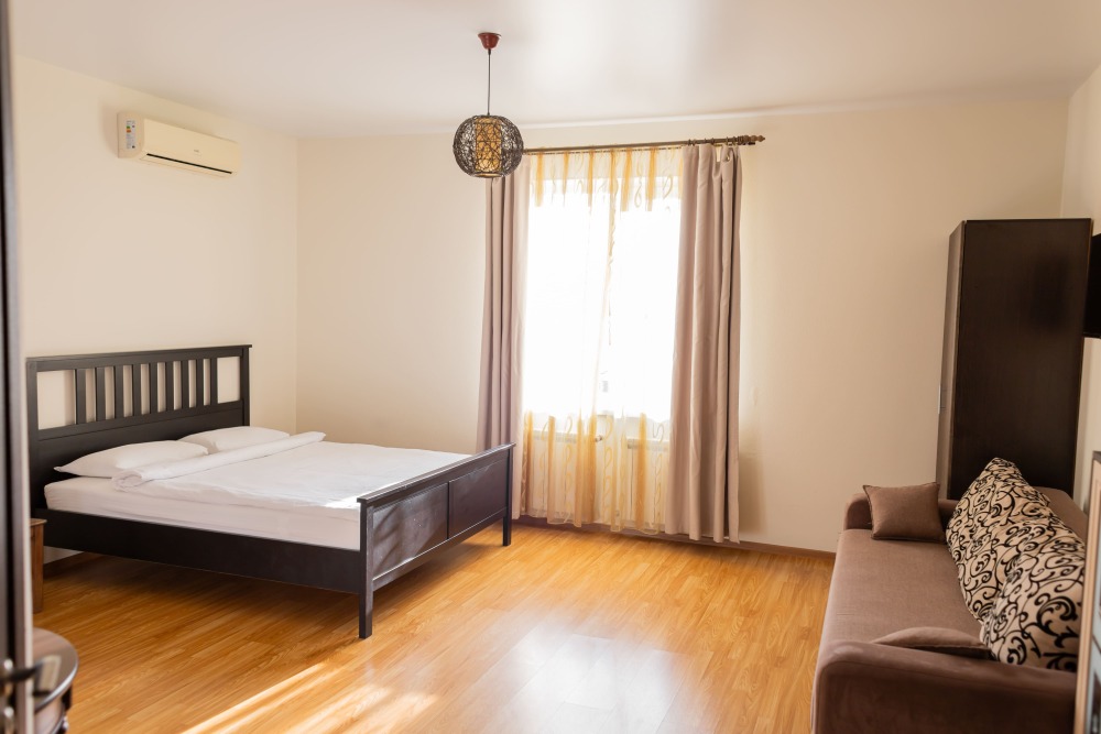 Двухспальная кровать, диван для одного гостя, шкаф, кондиционер, москитные сетки, спутниковое TV, wi-fi.