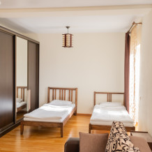 Две односпальные кровати, два двухместных дивана, шкаф, кондиционер, москитные сетки, спутниковое TV, wi-fi.