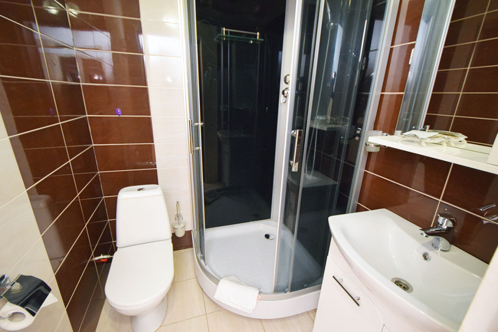 Просторный номер для троих гостей на основных местах. Номера расположены в 4-х этажном Корпусе №2 с 1 по 4 этажи, без лифта.