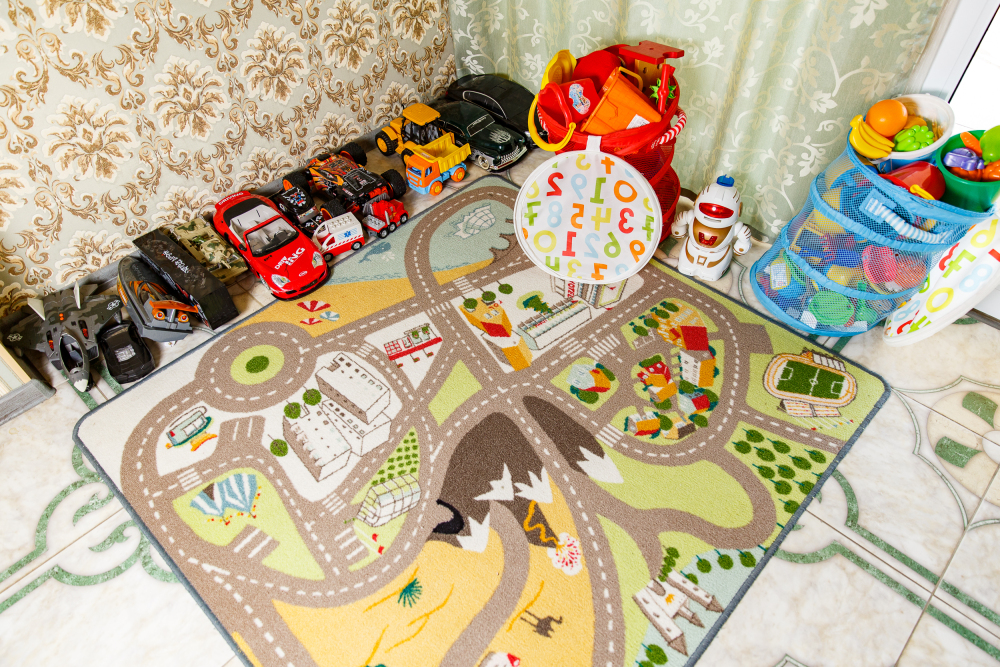 В гостиной установлены уютный раскладывающийся диван, журнальный и туалетный столики, закрытый одежный шкаф с сейфом, вешалка с зеркалом и тумба для обуви.