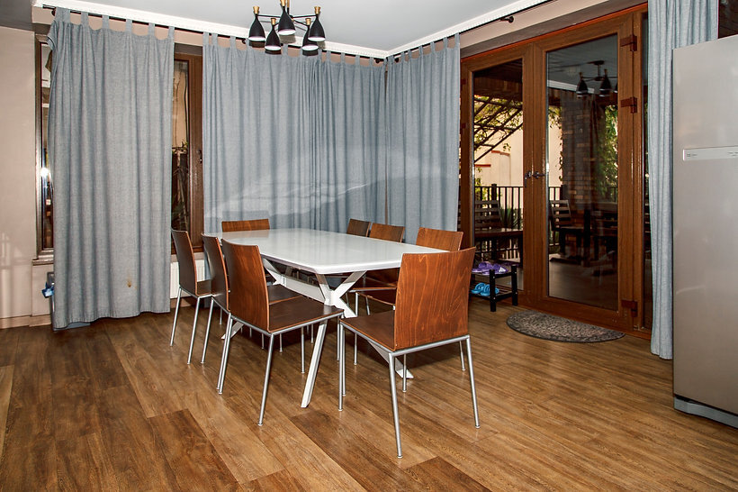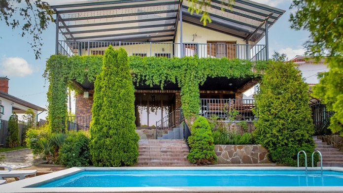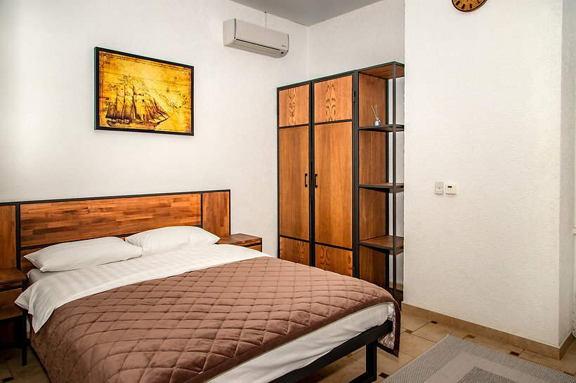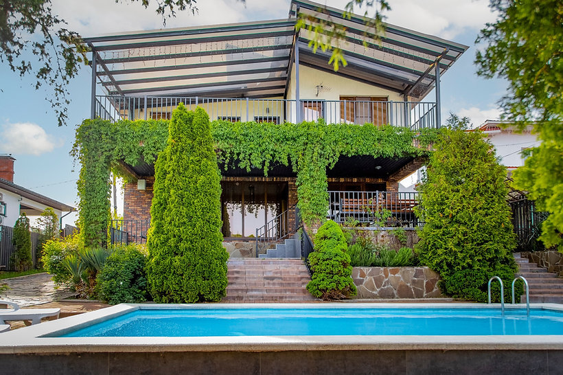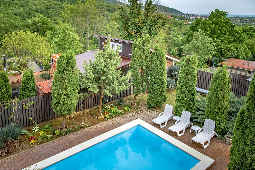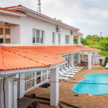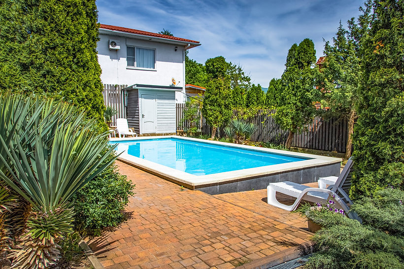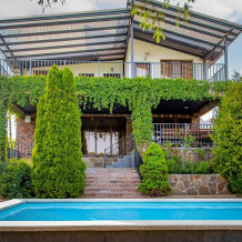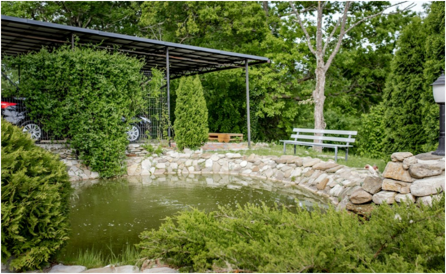На территории расположен еще один небольшой домик, разделяющий с ней природное великолепие и рукотворные блага цивилизации. Такие, как бассейн и пруд с живой рыбой. В доме есть все самое необходимое для комфортного проживания. Просторная кухня, кондиционеры, тв, интернет, уютные спальные комнаты, собственная мангальная зона. Общая вместимость данного дома - 8 человек. Бассейн - не индивидуальный.