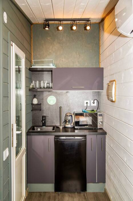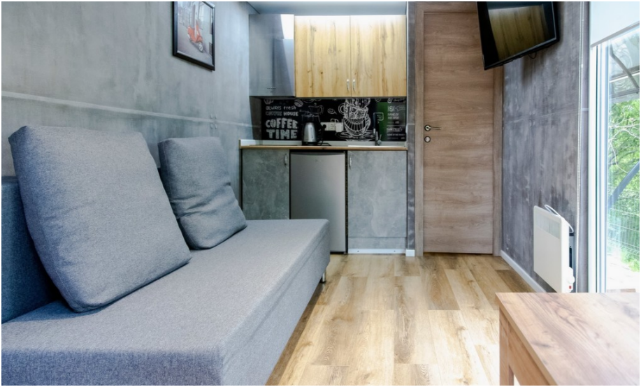 Идеальный выбор для любителей современной архитектуры, которые оценят комфорт и эргономичность стиля industrial design из морского контейнера. Сюда могут приехать до 2-х человек. В доме есть все необходимое, чтобы Вы почувствовали себя как дома: Smart TV с подпиской на Кинопоиск, ИВИ, ОККО, стиральная машина, сплит и полный комплект посуды. Проведите прекрасный вечер, наслаждаясь индивидуальной зоной барбекю с гамаком. А на территории ждет открытый бассейн (не индивидуальный) с шезлонгами. Но это не все! Вы можете провести время на крыше в Lounge зоне с шикарным видом на горы, лес и море.