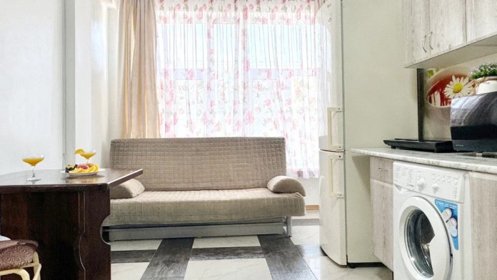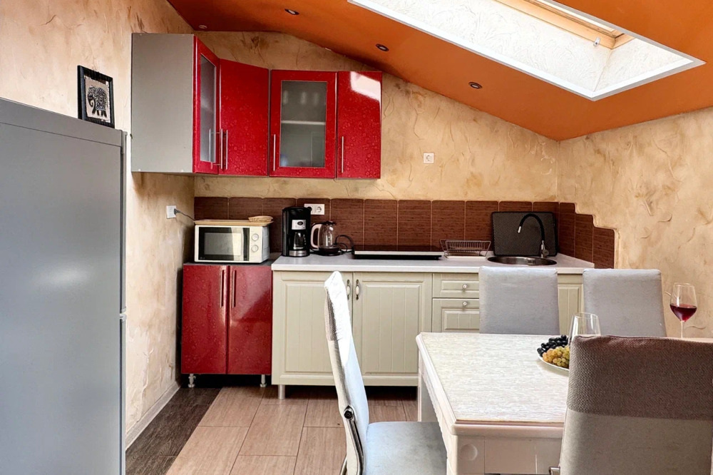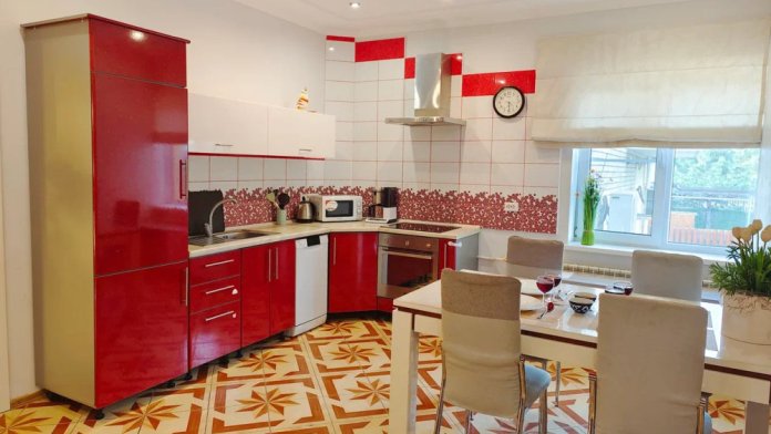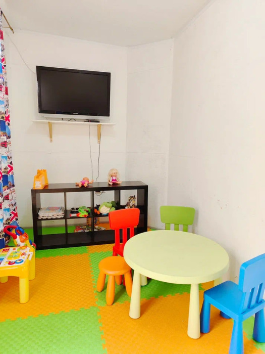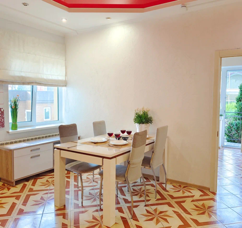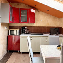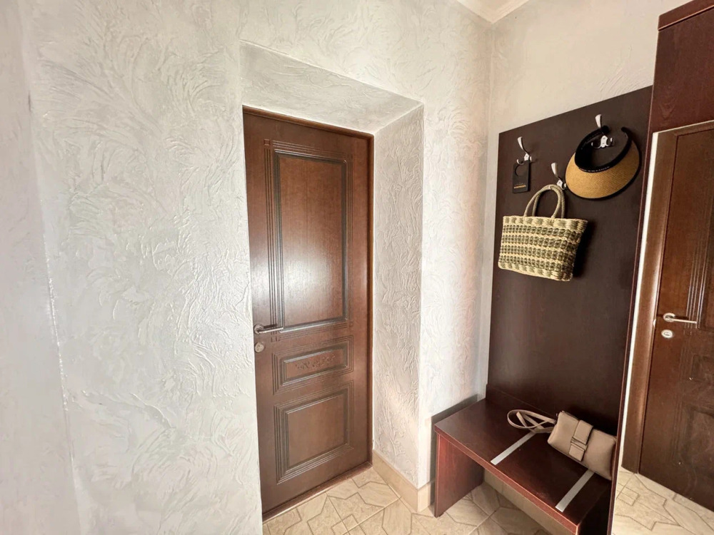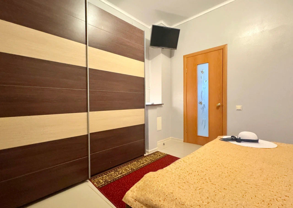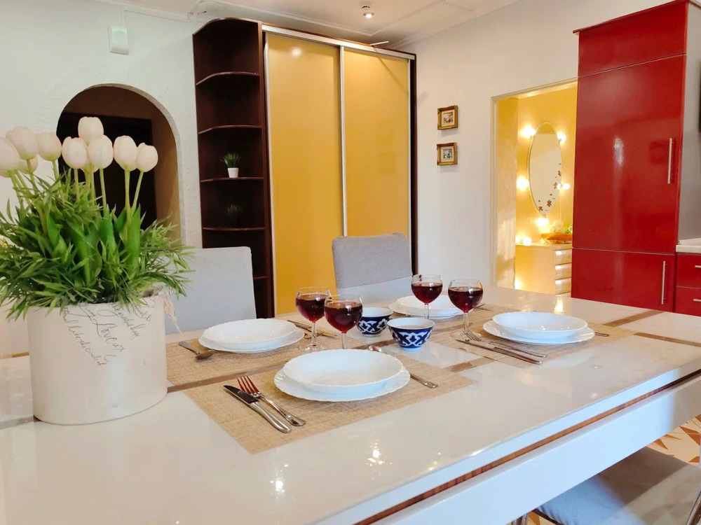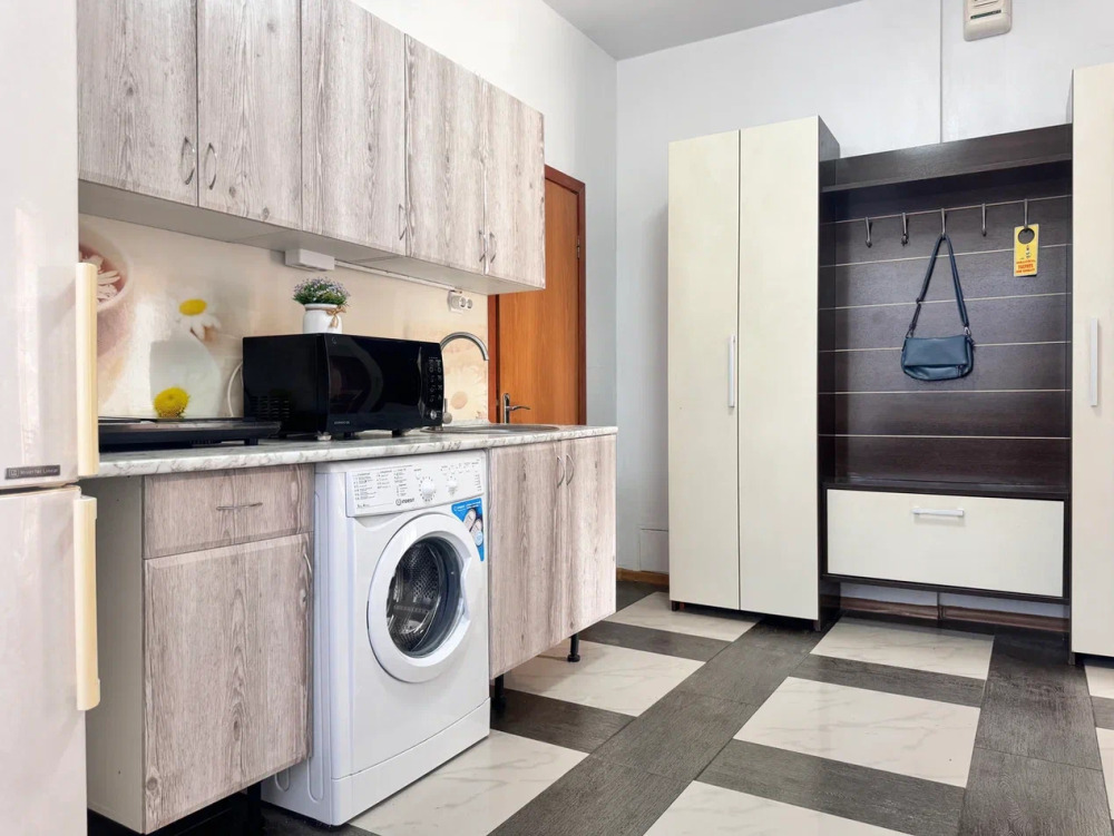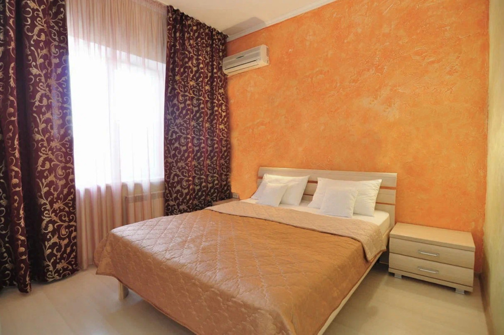 Спальня 1 оснащена: 2-мя односпальными кроватями, шкафом, тумбочками, кондиционером. Спальня 2: два двуспальных дивана, кондиционер, телевизор, мебельная стенка с полочками и шкафчиками, столик, гладильная доска и утюг. Спальня 3: двуспальная кровать, бра, тумбочка, зеркало, шкаф, кондиционер, сейф. Для наших гостей всем необходимым оборудована кухня: кухонным гарнитуром, обеденным столиком и стульями, микроволной печью, чайником, холодильном, двухконфорочной варочной панелью для приготовления еды, набором посуды и столовыми приборами. В номере имеется стиральная машина и сушилка для вещей.