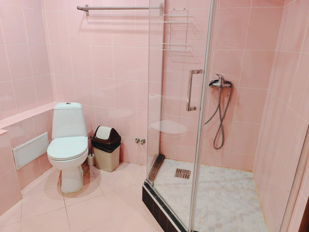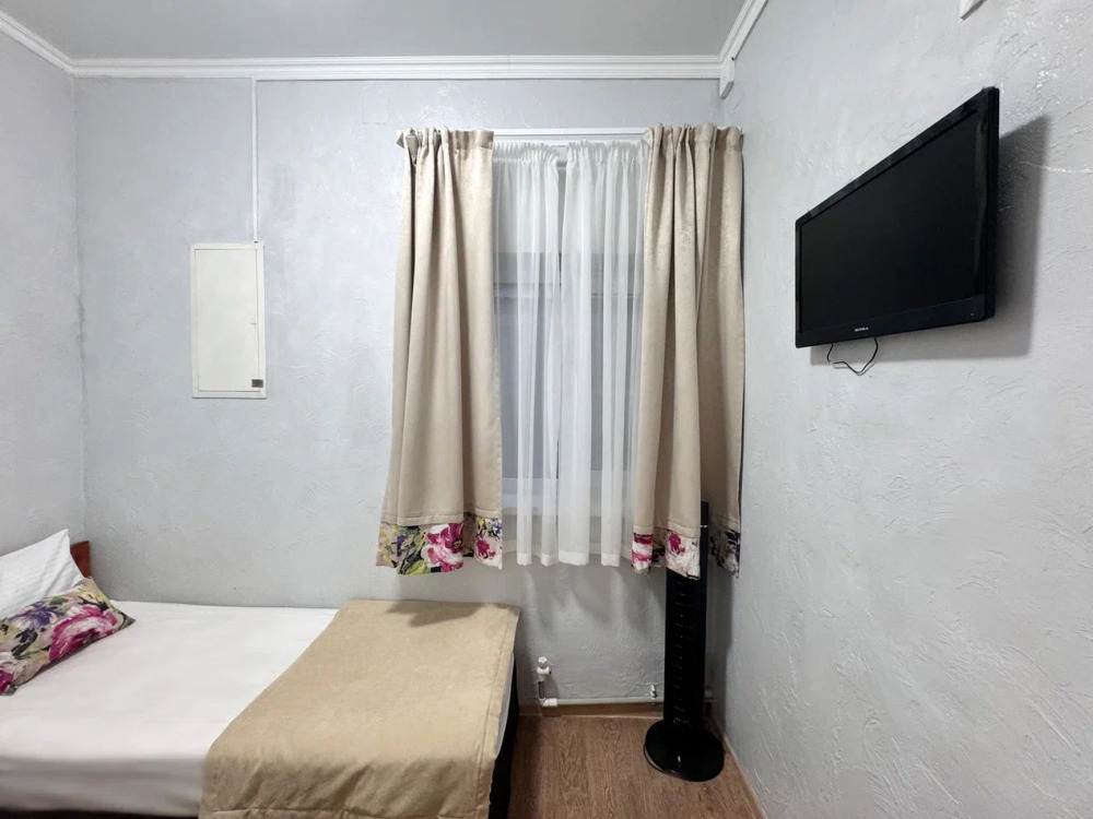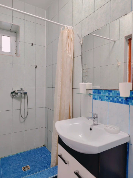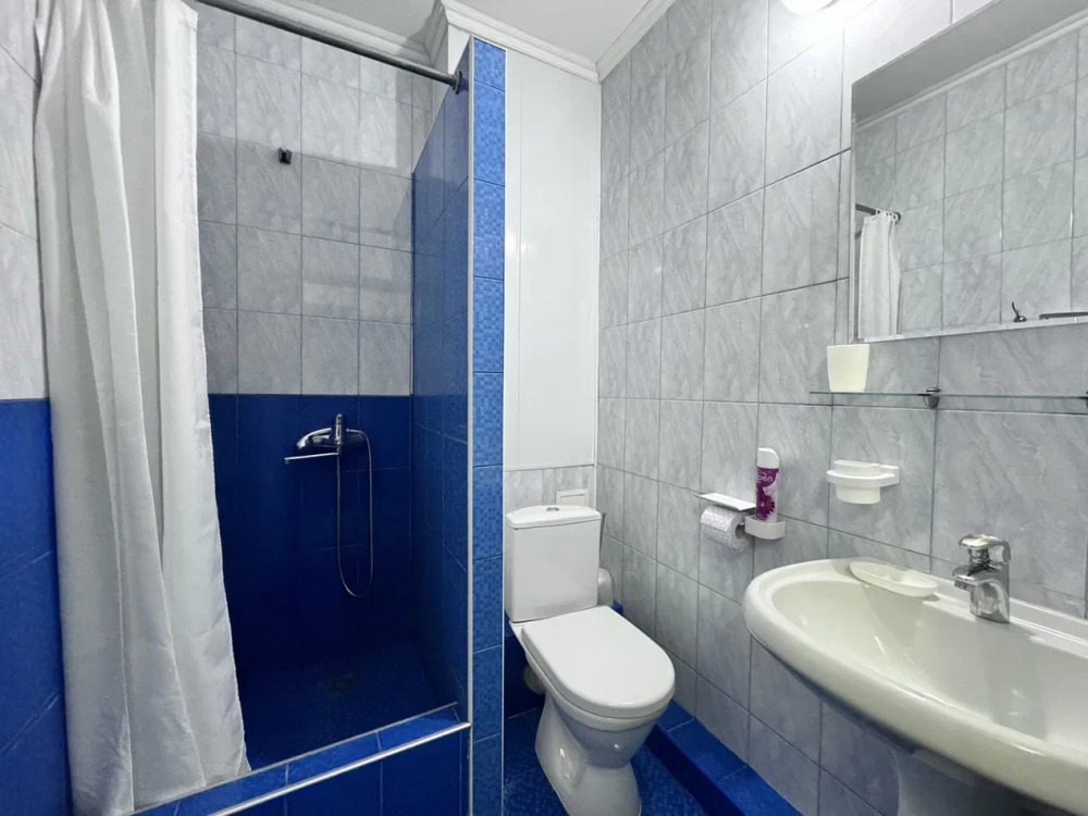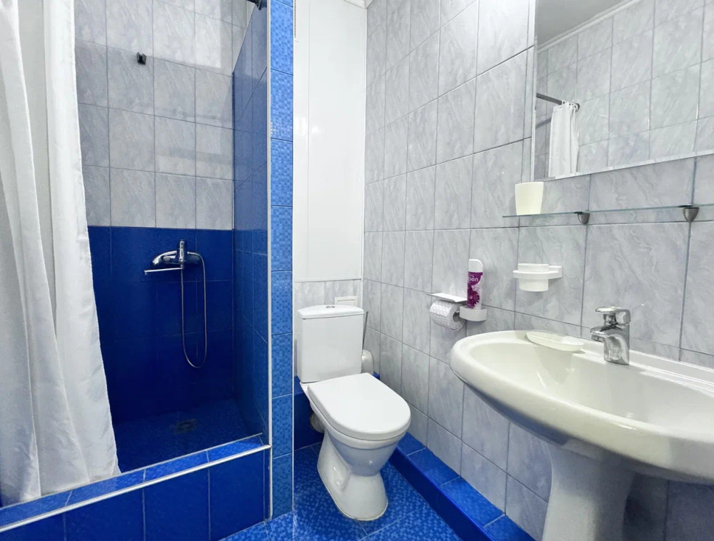 В номере собственная ванная комната: душ, раковина и и санузел.