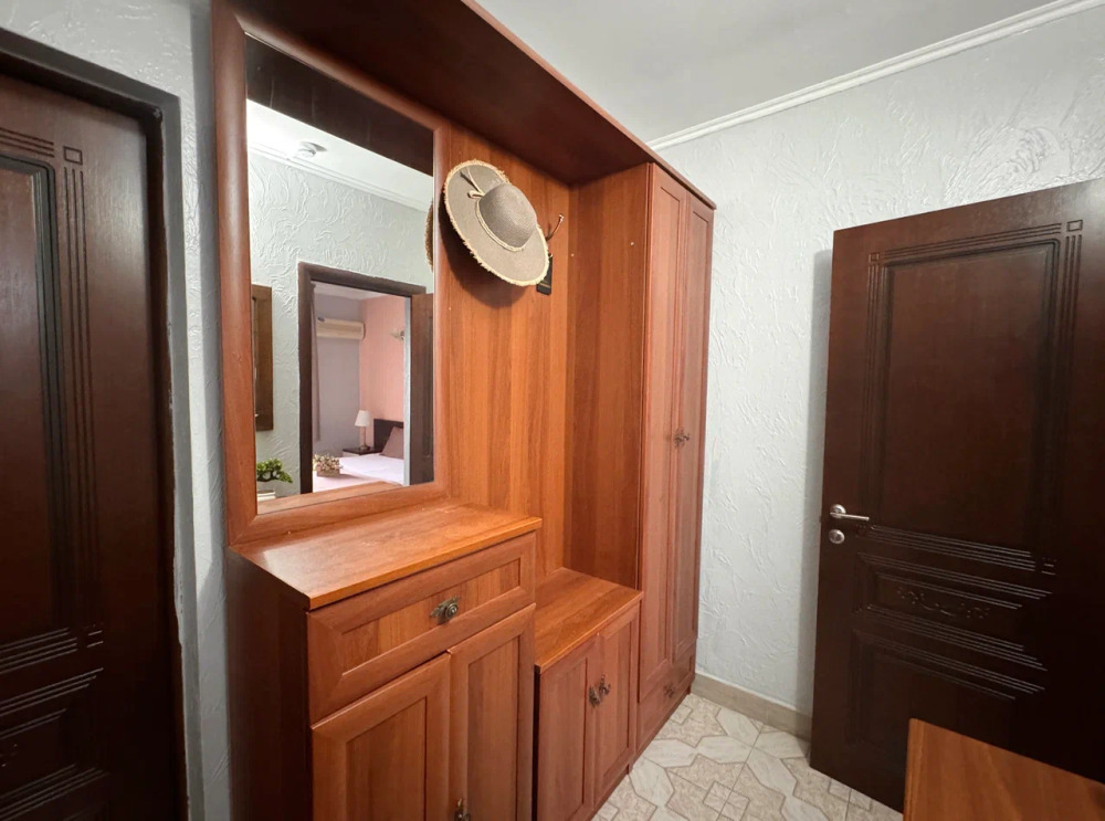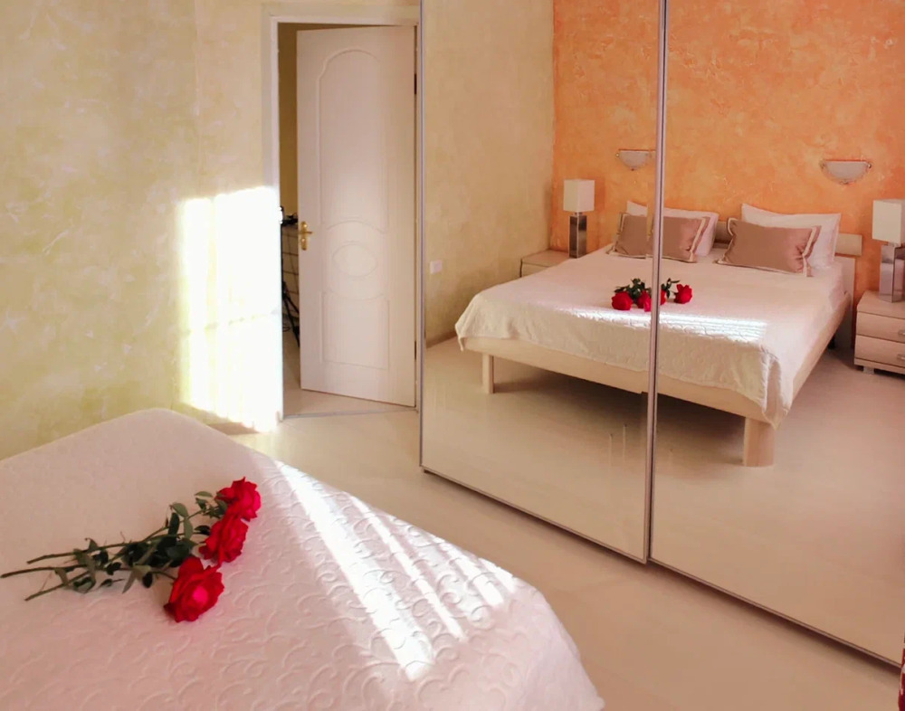 Спальня 1: двуспальной кроватью и односпальной кроватью, бра, прикроватными тумбочками, телевизором, кондиционером, шкафом, зеркалом, сейфом. Спальня 2: 2-мя односпальными кроватями, прикроватными тумбочками, бра, телевизором, кондиционером. В каждой спальне имеется балкон оборудованный летней мебелью, столом и стульями. Кухонный гарнитур, чайник, холодильник, микроволновая печь, набором посуды для приготовления еды, столовые приборы, двухконфорочная варочная панель, обеденный столик.