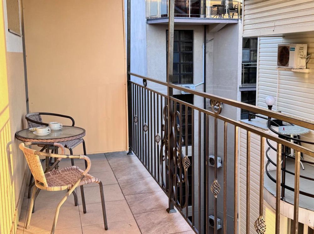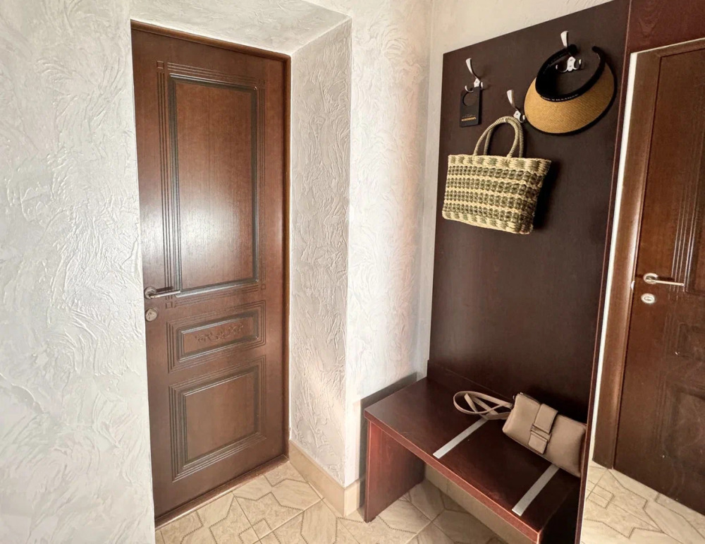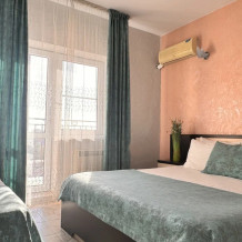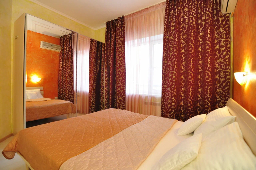 Номер оборудован всем необходимым для комфортного проживания. Спальня 1: 2-е односпальные кровати, прикроватные тумбочки, бра, кондиционер, телевизор, мини-холодильник, чайник. Балкон оснащен летней мебелью для отдыха на свежем воздухе, столом и стульями. Спальня 2: двуспальная кровать, прикроватные тумбочки, бра, кондиционер, телевизор. В прихожей находится вешалка для одежды, комод, зеркало, сейф.