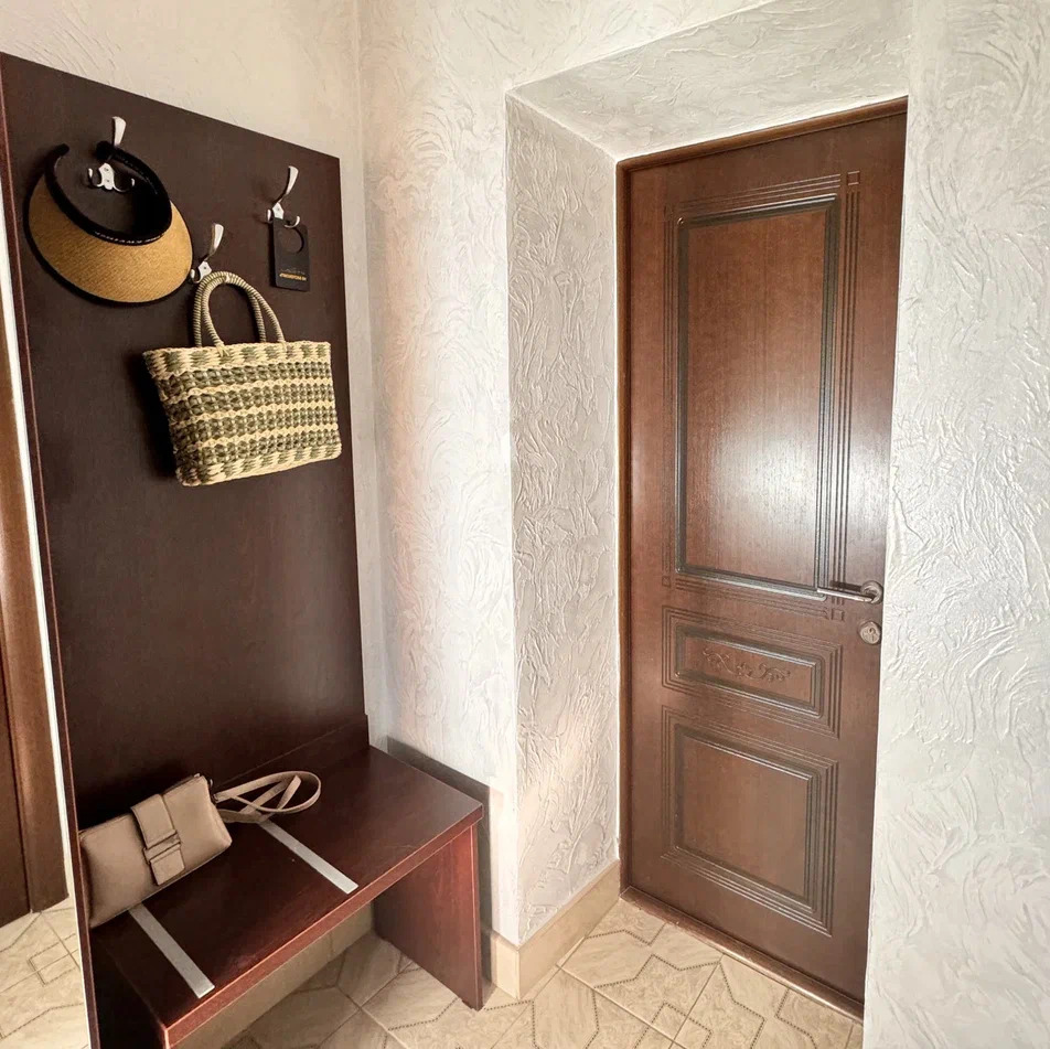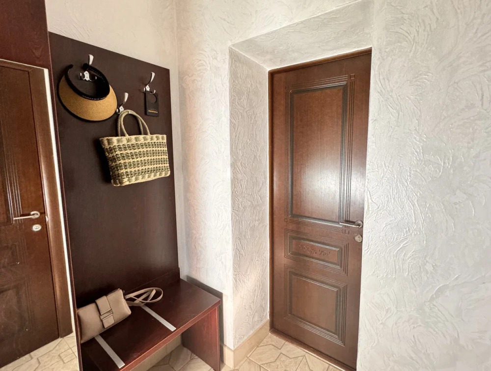 Спальня 1: с двуспальной кроватью, мебельной стенкой, тумбочками, кондиционером, телевизором, журнальным столиком. Балкон оборудован летней мебелью, столом и стульями. Спальня 2: двуспальная кровать, бра, тумбочки, кондиционер, шкаф, сейф. В коридоре комод и зеркало, гладильная доска и утюг, сушилка для одежды вещей. Спальня 3: 2-е односпальные кровати, тумбочка, шкаф, комод, телевизор, кондиционер. Кухонный гарнитур, чайник, холодильник, микроволновая печь, посудомоечная машина, обеденный стол и стулья, варочная панель. Ванная комната: душевая кабина, санузел и раковина.