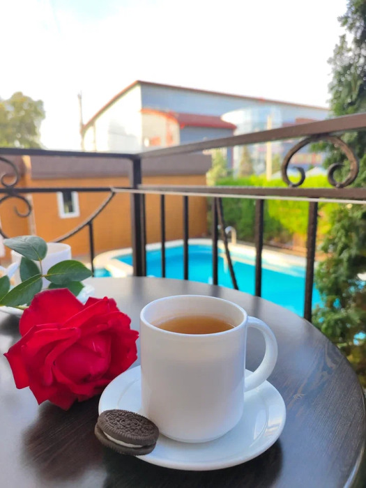Каждый день Вас будет ждать вкусная и разнообразная кухня по типу «Шведский стол», а в любое время можно освежиться в бассейне с подогревом, где есть отдельная зона для детей. Территория отеля ухожена и спокойна — идеальное место, чтобы расслабиться на свежем воздухе.