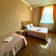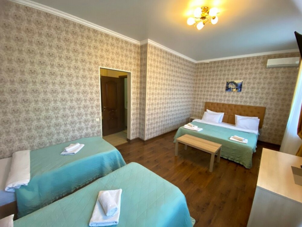 В номере: 1 двуспальная кровать и 2 односпальные кровати.
