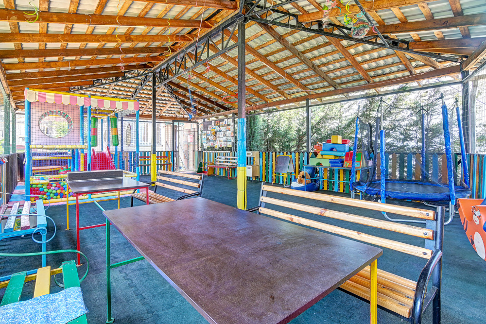 Проживание в номере со всеми удобствами; 3-х разовое питание; автостоянка; детская анимация; библиотека; беседки с мангалом; Wi-Fi на территории; пользование бассейном;