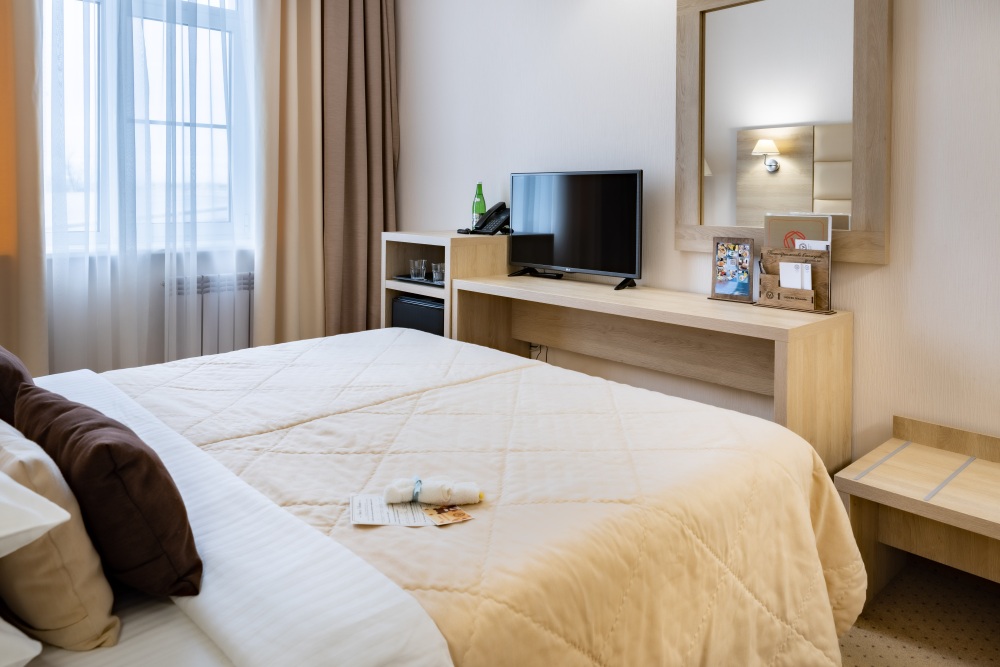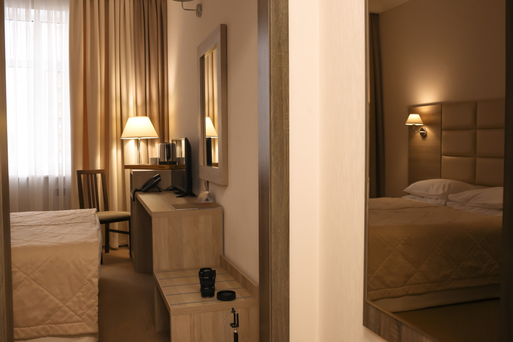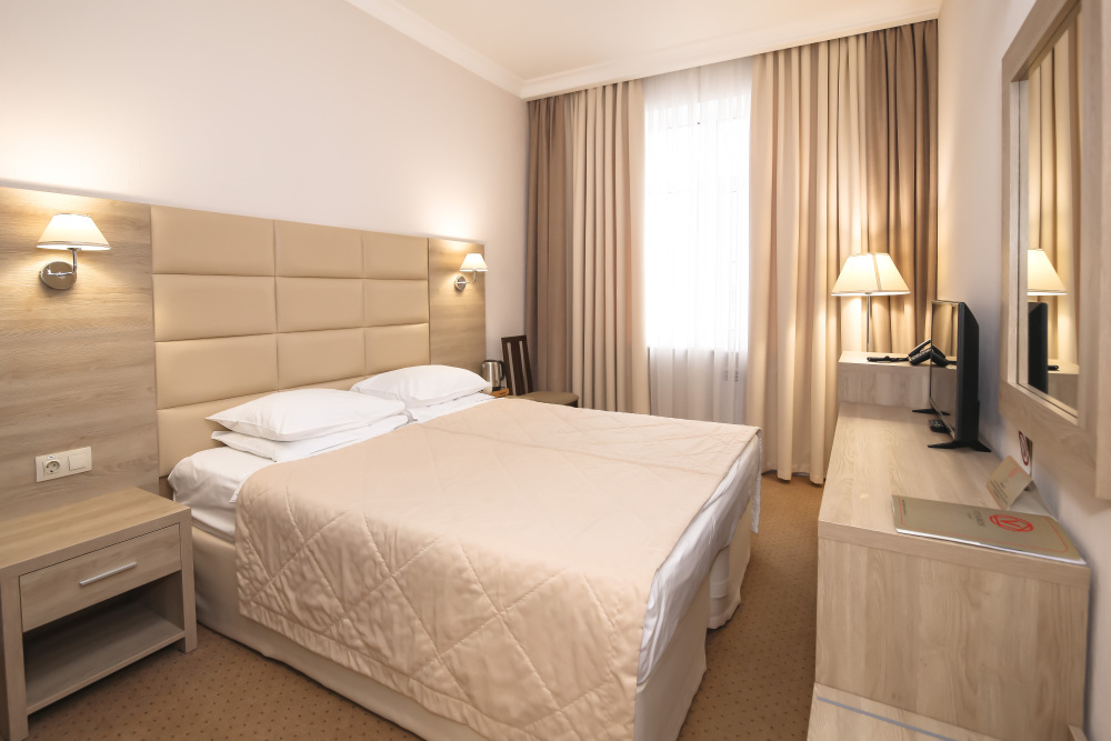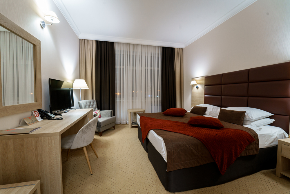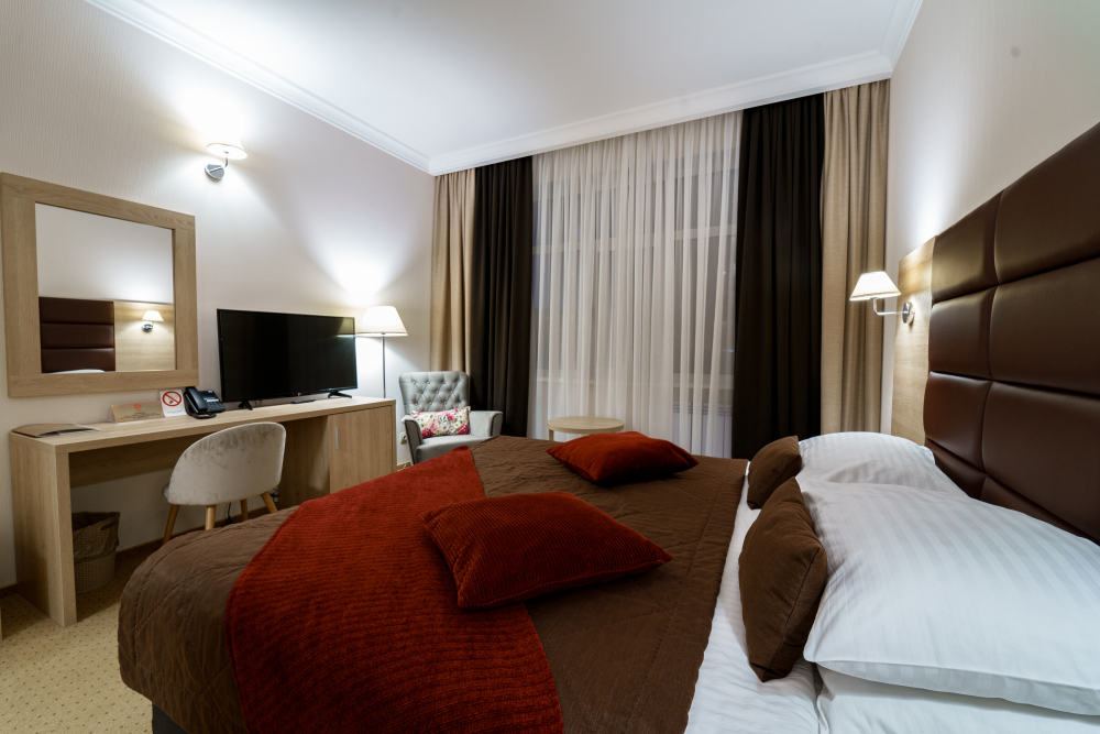 У нас вы найдете как комфортабельные номера по доступным ценам , так и дизайнерские люксы для любителей изысканного отдыха. Номера оборудованы удобной рабочей зоной и высокоскоростным интернетом, что поможет Вам решить неотложные дела. Круглосуточная охрана и закрытая парковка с видеонаблюдением дает гарантию вашей безопасности и комфортного пребывания. Вас не покинет ощущение домашнего уюта в комнате с приятным цветовым решением, удобным матрасом, большим ТВ и компактным мини-баром. Каждый номер оборудован всем необходимым для приятного и спокойного пребывания, а чистота и уют гарантированы.