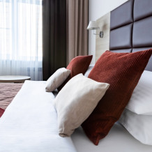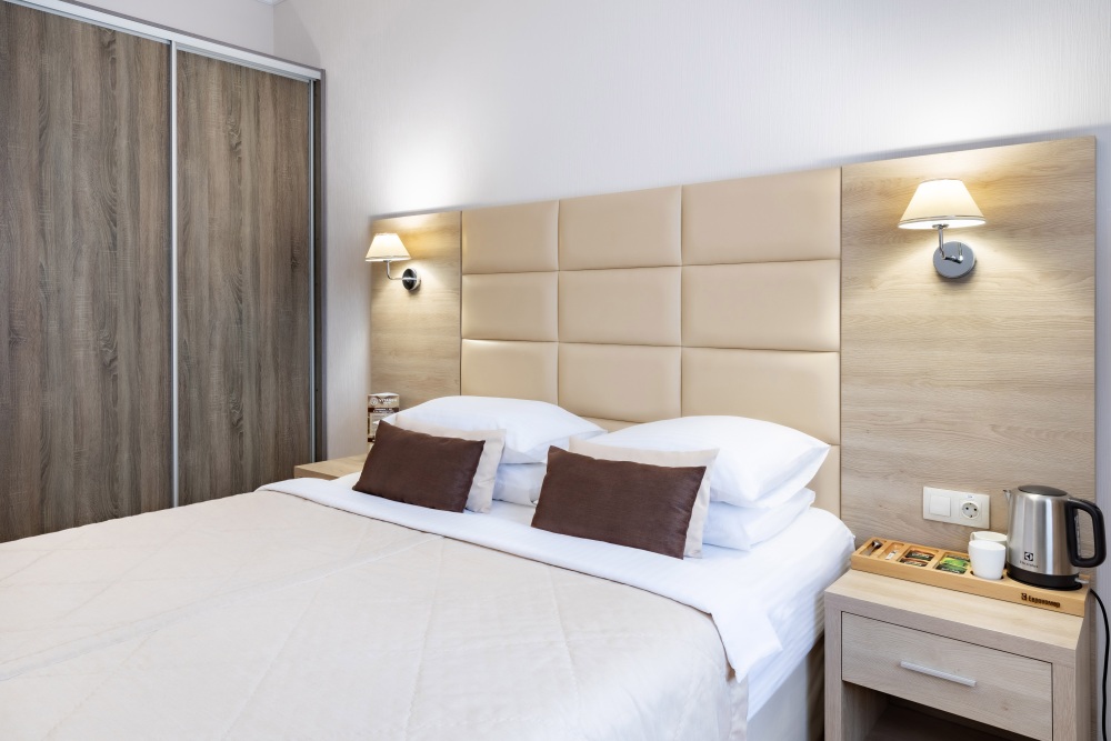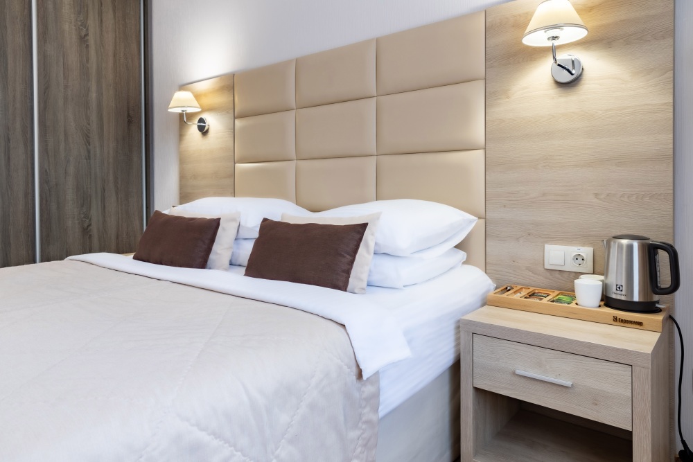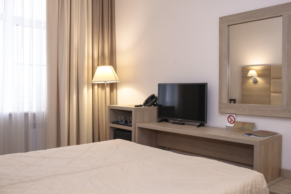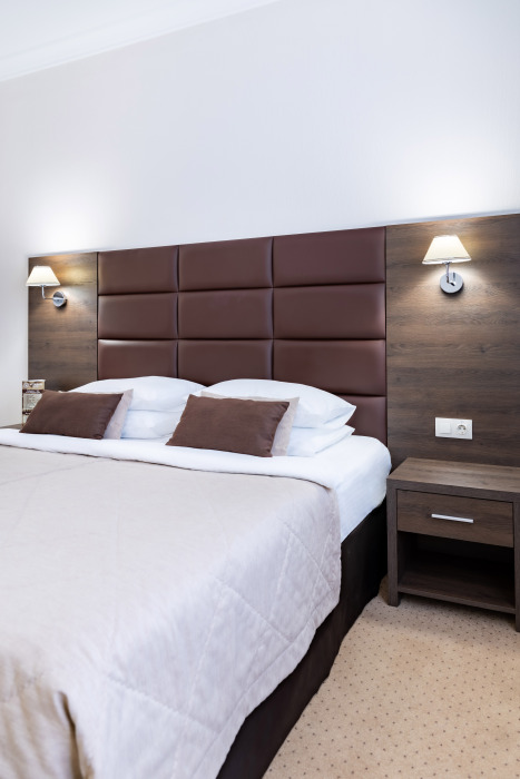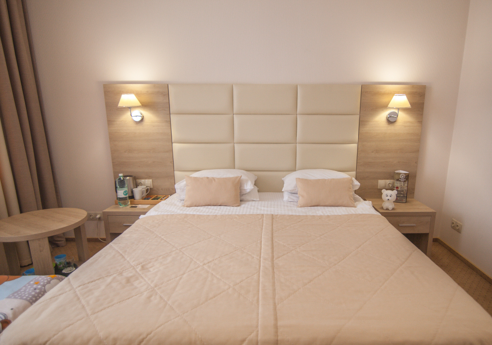 У нас вы найдете как комфортабельные номера по доступным ценам , так и дизайнерские люксы для любителей изысканного отдыха. Номера оборудованы удобной рабочей зоной и высокоскоростным интернетом, что поможет Вам решить неотложные дела. Круглосуточная охрана и закрытая парковка с видеонаблюдением дает гарантию вашей безопасности и комфортного пребывания. Вас не покинет ощущение домашнего уюта в комнате с приятным цветовым решением, удобным матрасом, большим ТВ и компактным мини-баром. Каждый номер оборудован всем необходимым для приятного и спокойного пребывания, а чистота и уют гарантированы.