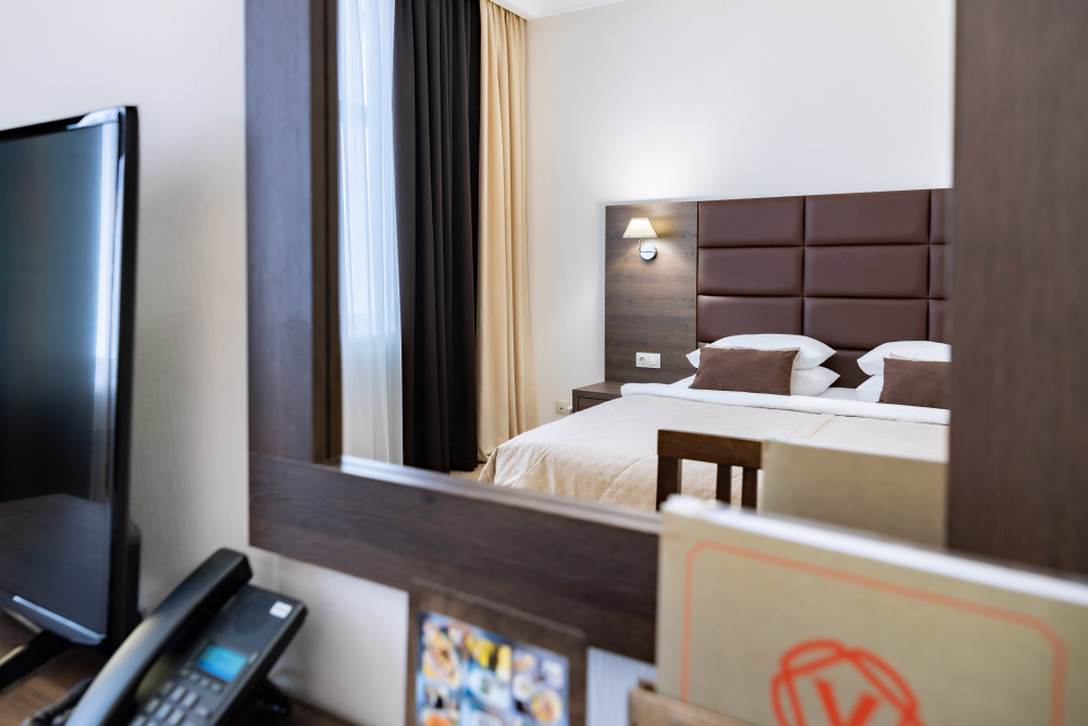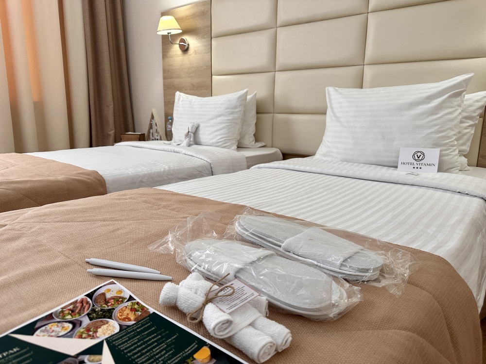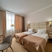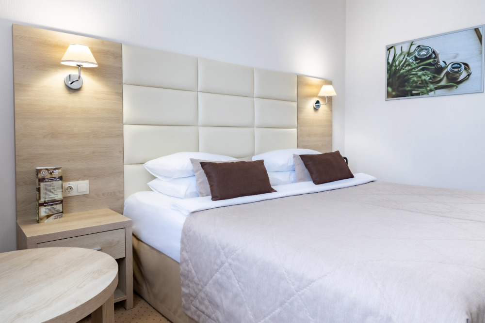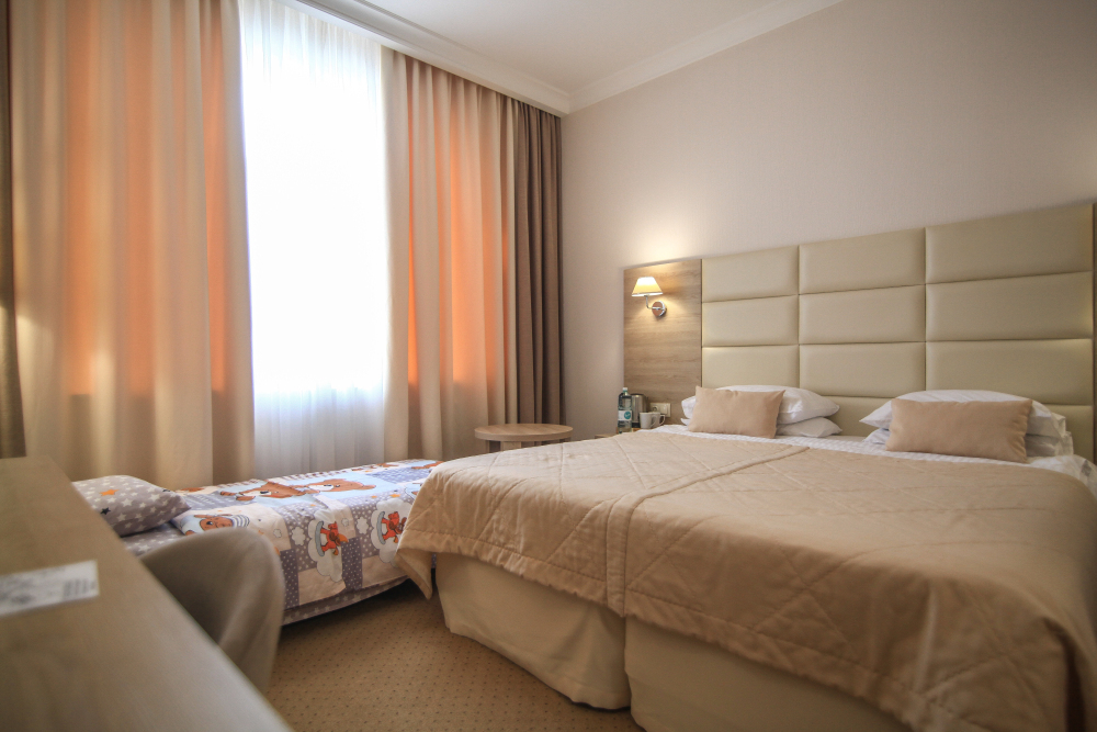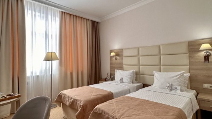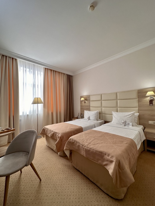 Ваш идеальный номер «Стандарт TWIN» с удобными кроватями и ортопедическими матрасами подходит для деловых поездок и семейного отдыха.