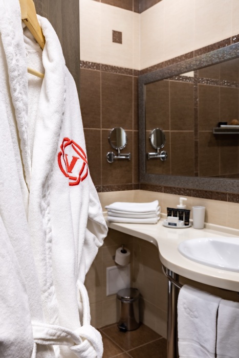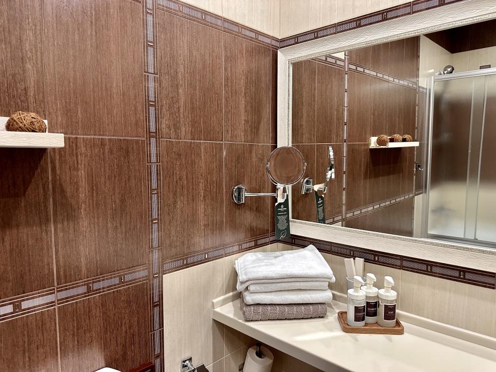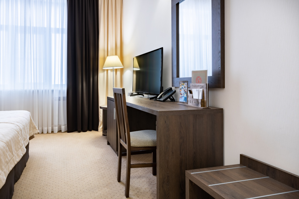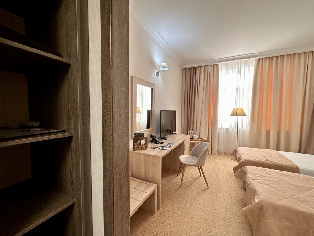 Для вашего комфорта номер оборудован всем необходимым: душевая кабина, телевизор, индивидуальная система климат-контроля, мини-бар(по запросу), набор для приготовления чая и кофе, телефон, Wi-Fi (высокоскоростной интернет), сейф. Рабочее место, канцелярия помогут вам в любой момент решить важные вопросы. Отдых и удобство сопровождают ваше пребывание в отеле.