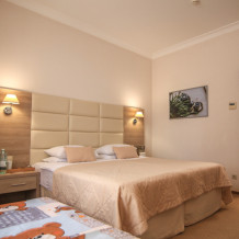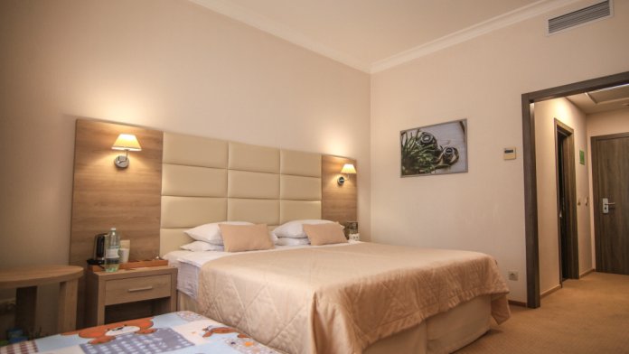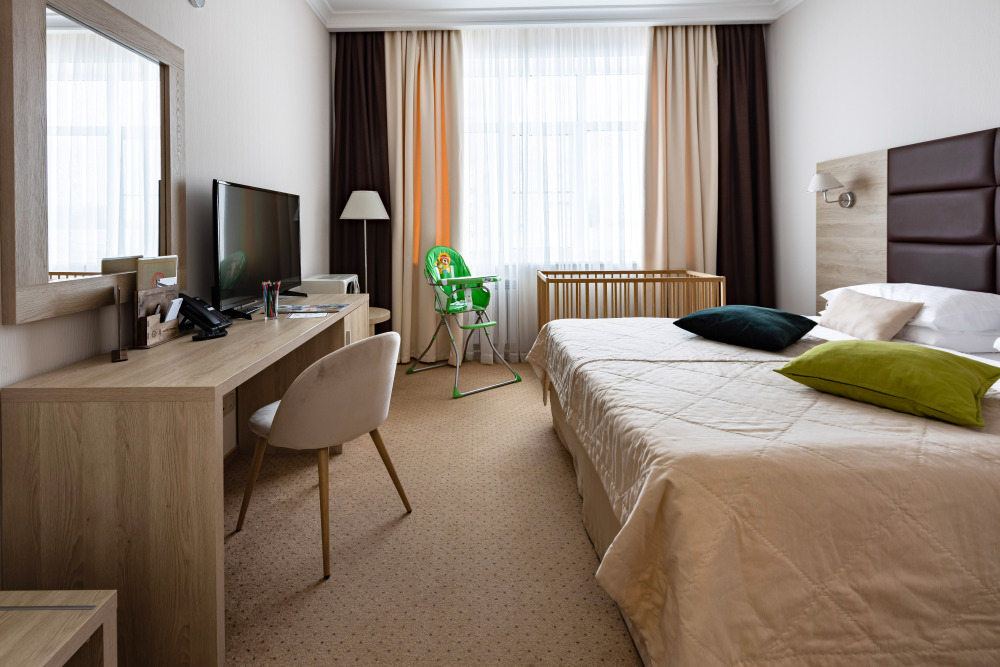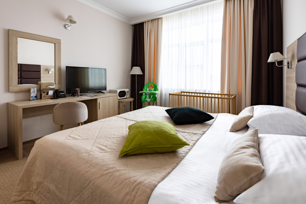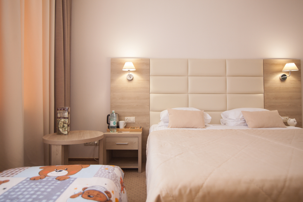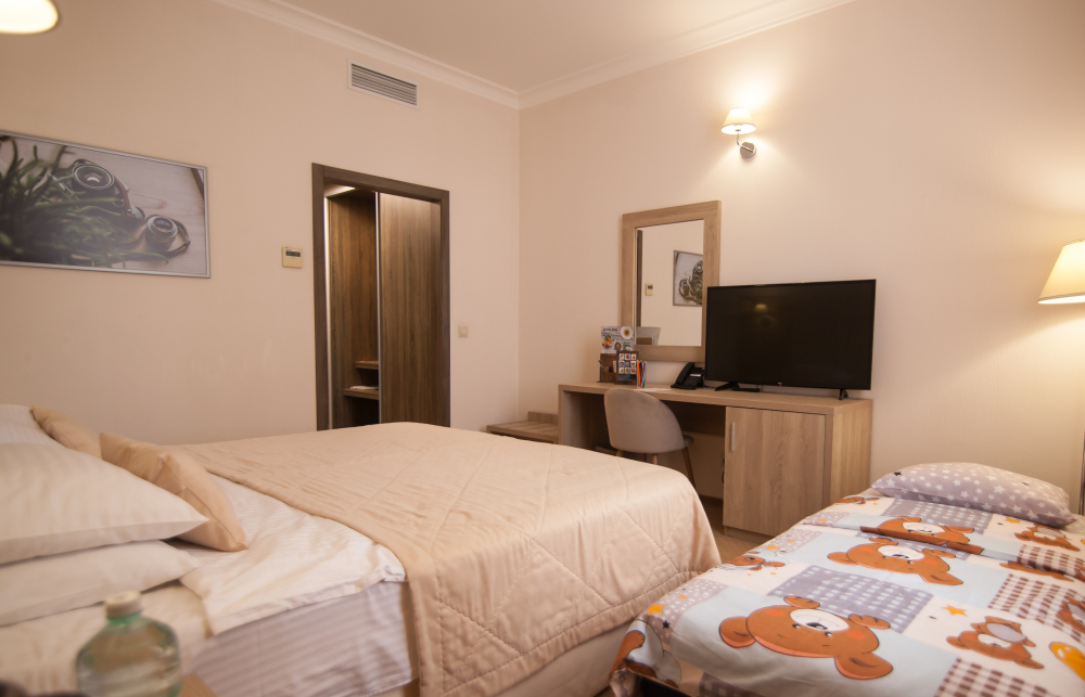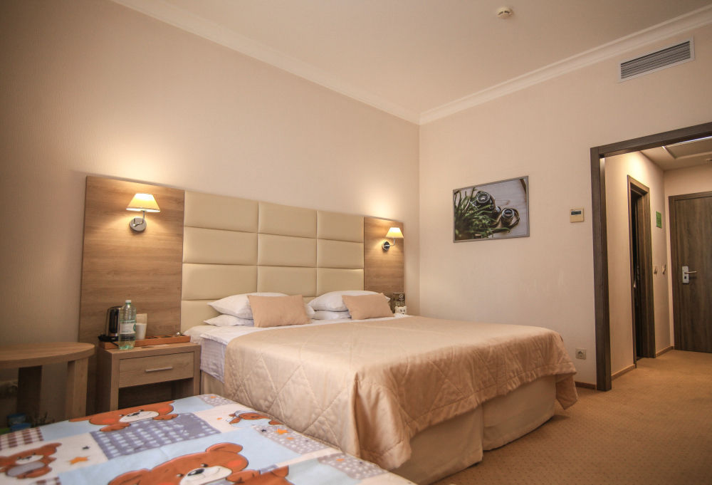 Родителей, путешествующих с маленькими детьми, порадует номер Комфорт «Family». Это просторная комната с хорошим освещением, с мягкими уголками на мебели для безопасности ваших деток.