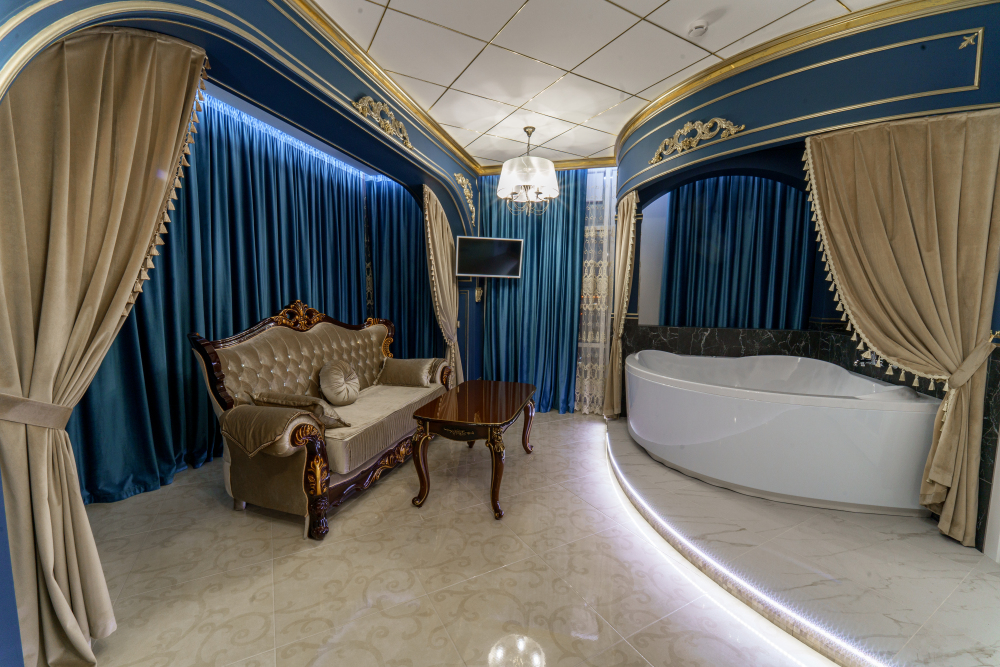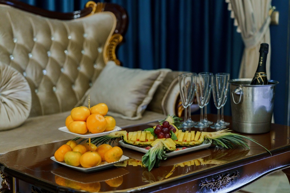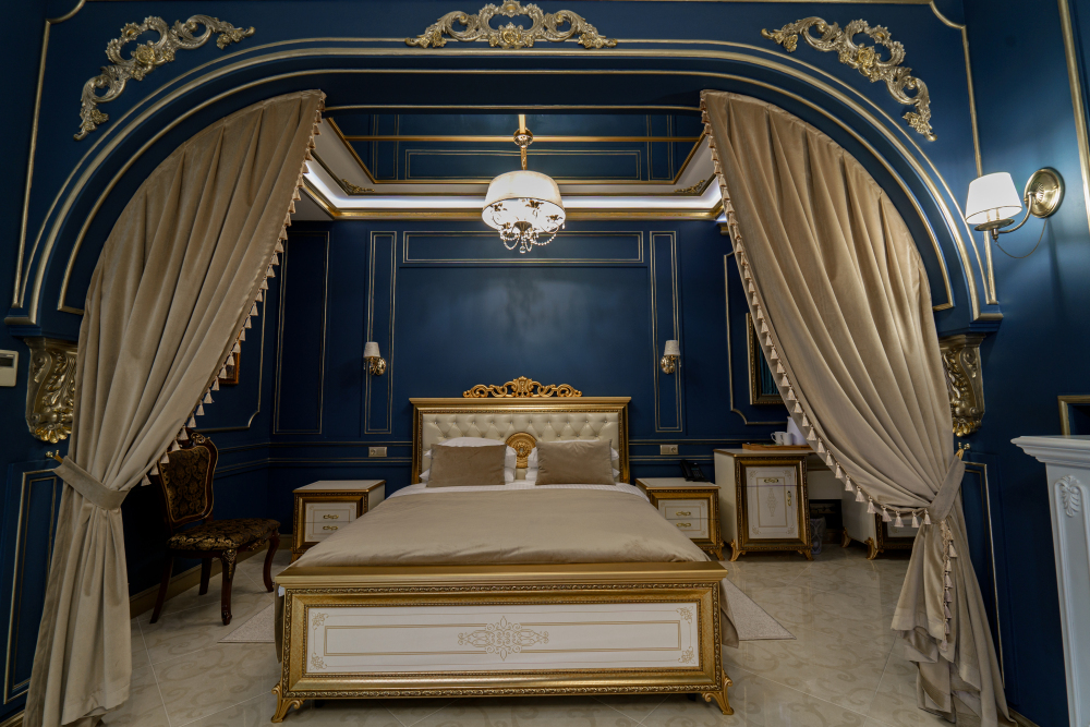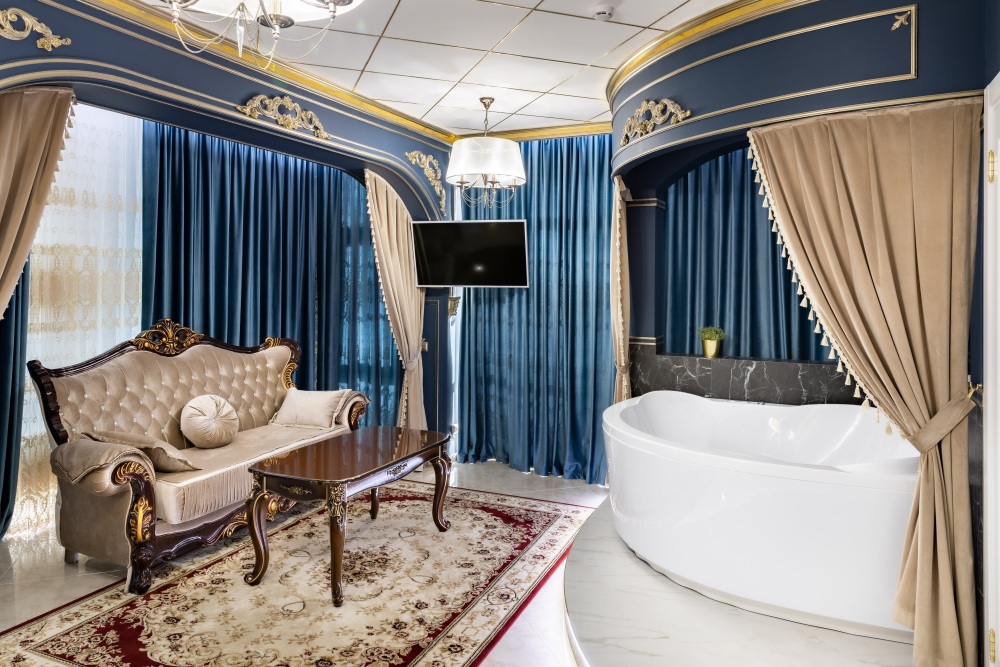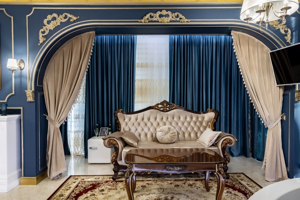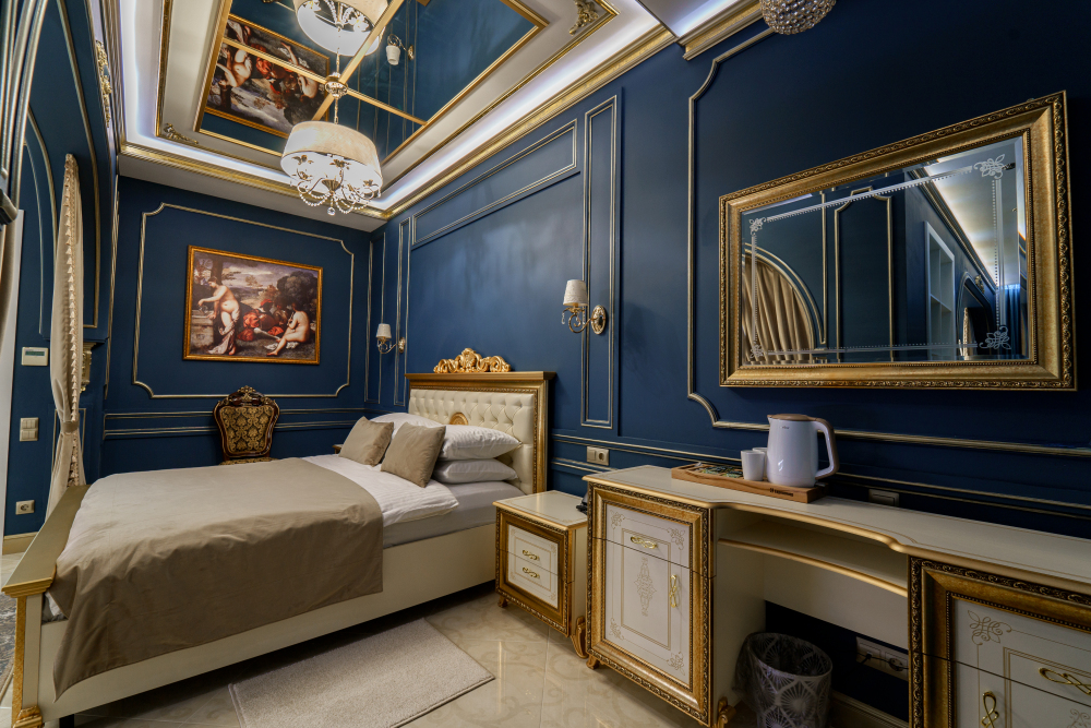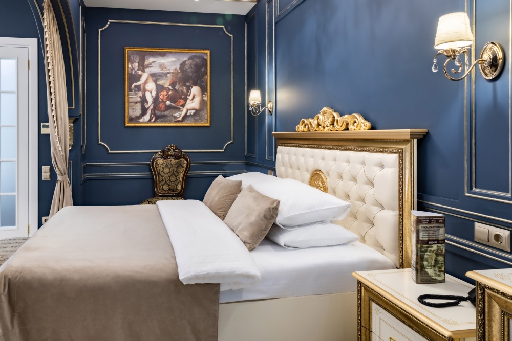 Название «Версаль» у многих вызывает ассоциации с великолепным королевским дворцовым ансамблем в пригороде Парижа. Однако это еще и дизайнерский стиль, который присущ нашему «королевскому» номеру. Этот стиль гармонично сочетает элементы классицизма, барокко и рококо. Создать атмосферу дворца помогает дизайнерская смелость и художественный вкус.