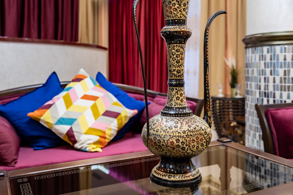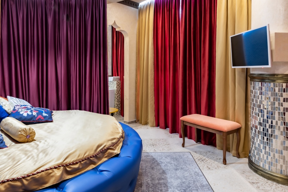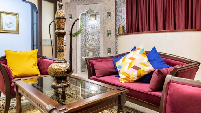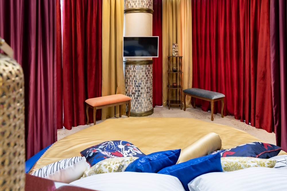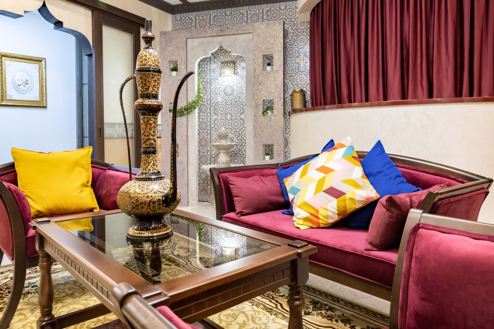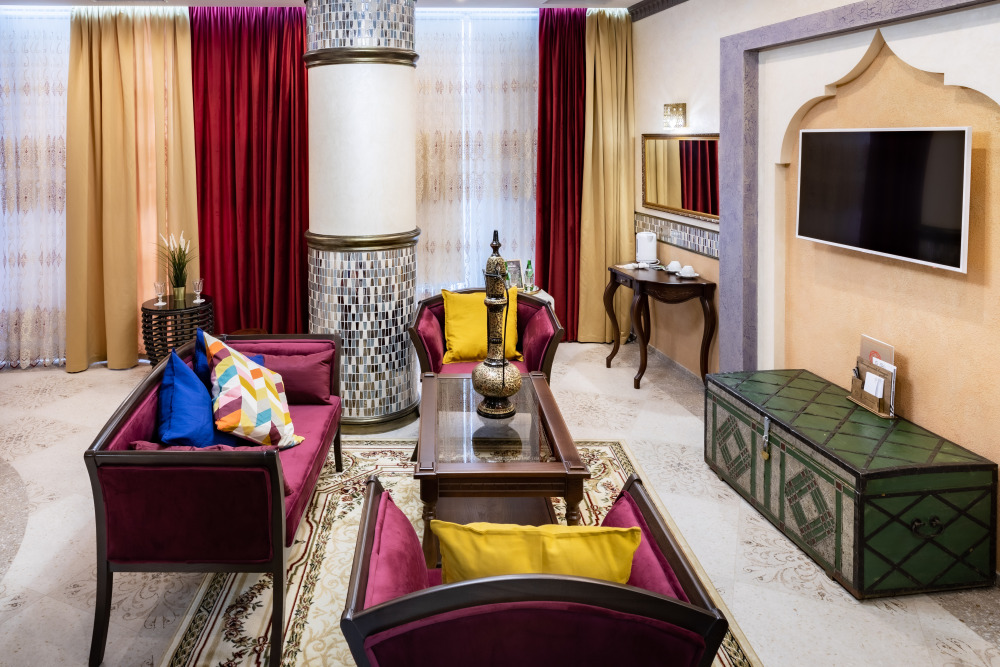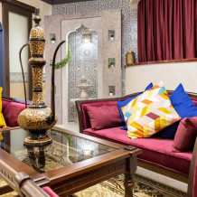 Номер «Марракеш» — это роскошь, и простота, причудливость форм и узоров, таинственный шарм этнических деталей, пряный аромат благовоний, чарующие мотивы колониальных стран, национальная роспись, мерцание свечи, сквозь цветное стекло, цветная мозаика и золото...Фаворитом стиля «Марракеш», в городской среде, является сказочная, чарующая, коллекция интерьерных подушек и элементы декора напоминающие о тепле и чудесах африканских стран.