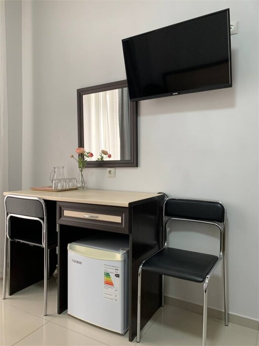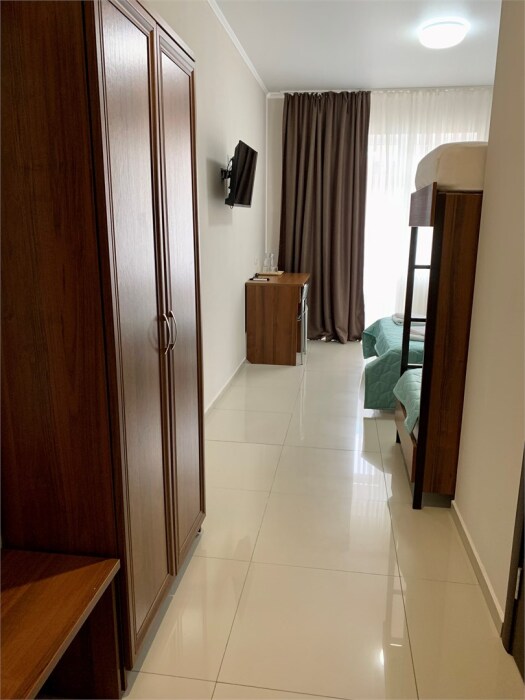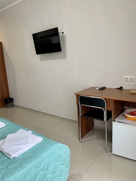 Для удобства: рабочий стол со стульями, шкаф для одежды, ЖК-телевизор, Wi-Fi, холодильник, кондиционер, фен, сейф. Собственный санузел и душевая.