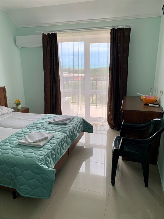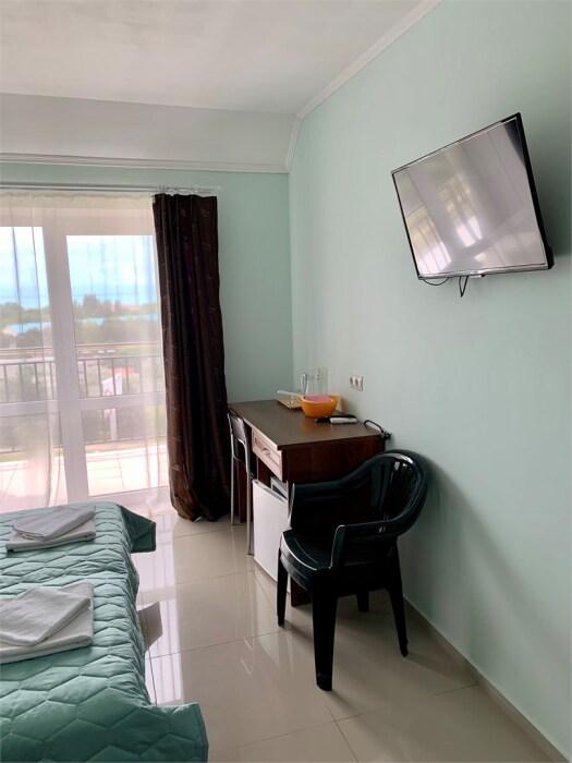 С балкона, который укомплектован летней мебелью, открывается прекрасный вид на море или уютный дворик с бассейном.