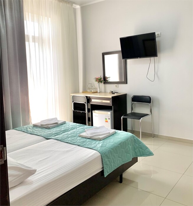 Для удобства номер оснащен всем необходимым: рабочий стол со стульями, шкаф для одежды, ЖК-телевизор, Wi-Fi, холодильник, кондиционер, фен, сейф.