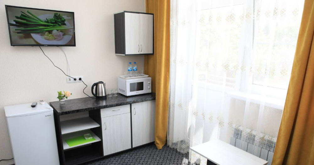 Все номера оснащены телевизорами, кондиционерами, холодильниками. Бесплатный WI-FI. На территории мини-отеля расположен буфет, где можно заказать в номер очень вкусный завтрак, обед, ужин, чай, кофе или разливное пиво. Весь интерьер новый и современный.