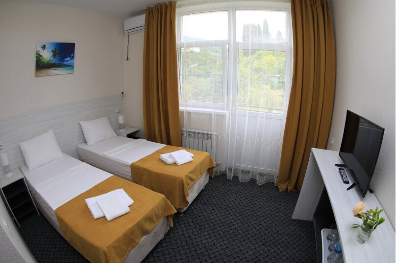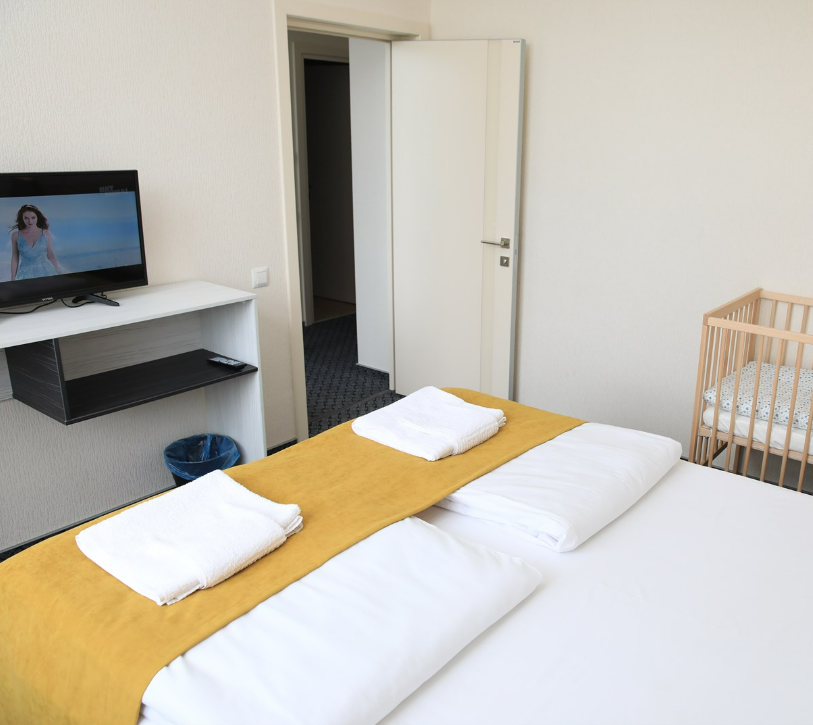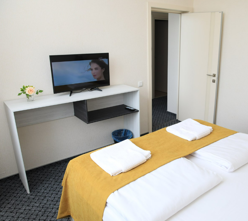 Номер с одной большой двуспальной кроватью или с двумя односпальными кроватями (по желанию). Так же по желанию за дополнительную плату в номер можно поставить удобную дополнительную раскладную кровать с постельным бельем, подушкой и одеялом. В комплектацию номера входит также телевизор с плоским экраном, небольшой холодильник, гостиничный сейф, кондиционер, столик, стулья и прикроватные тумбочки. Санузел с душевой кабиной, раковиной, унитазом и феном в каждом номере. В каждом номере есть небольшой «французский» балкончик для сушки белья и пляжных принадлежностей.
