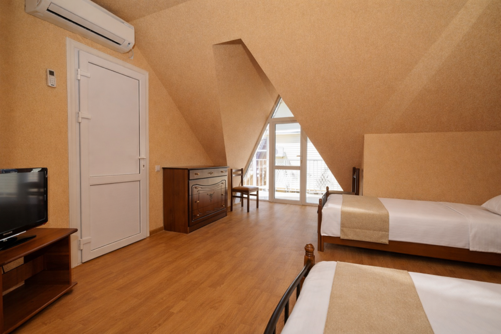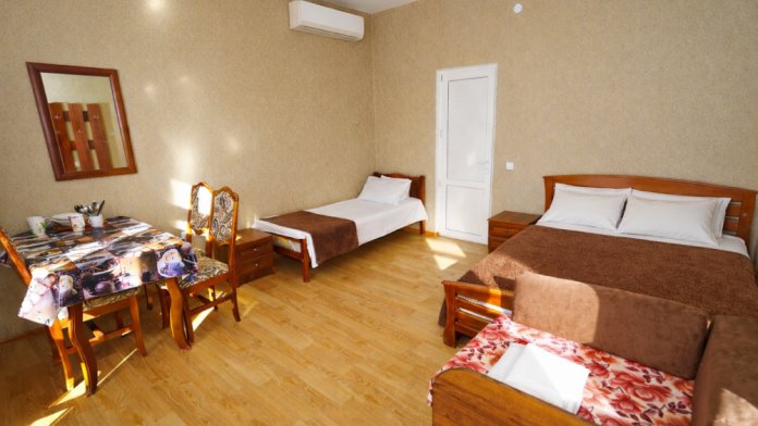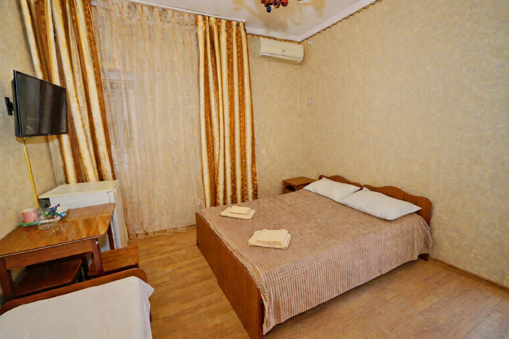 В нашем гостевом доме Вас ждут уютные номера, оформленные в современном стиле. Каждый номер оснащен всем необходимым для комфортного проживания: кондиционером, телевизором, холодильником и бесплатным Wi-Fi.