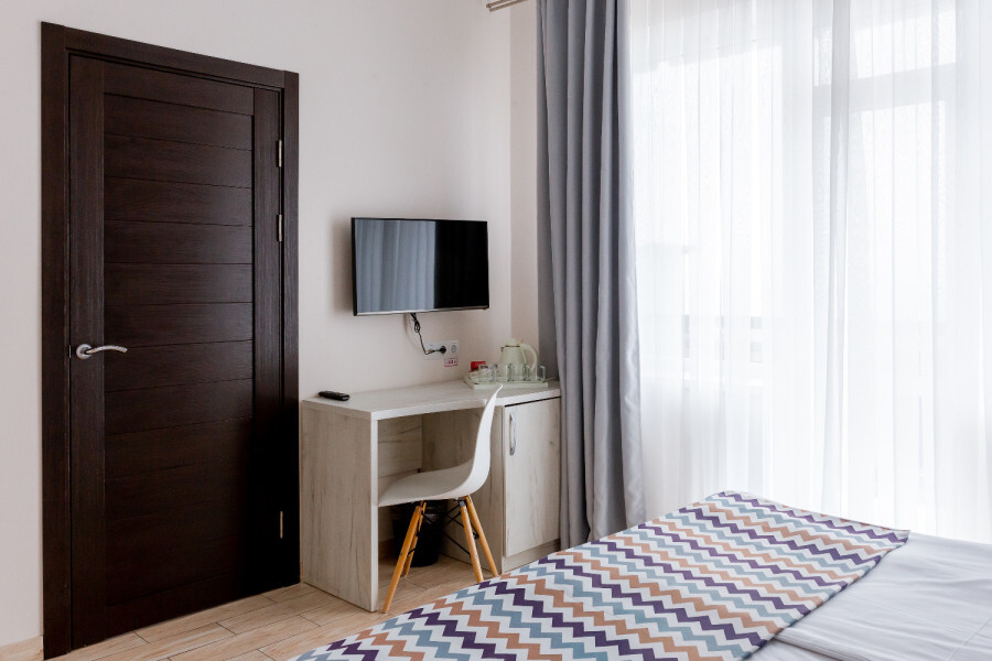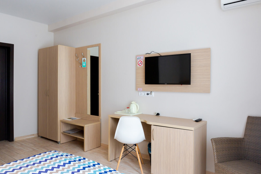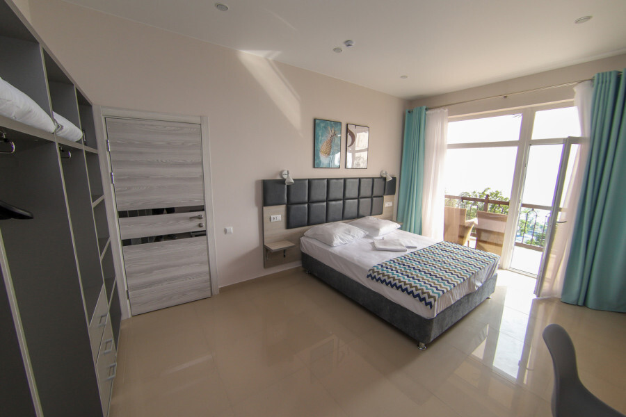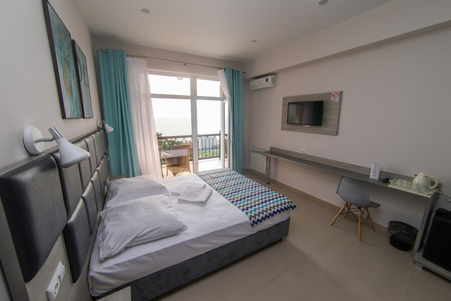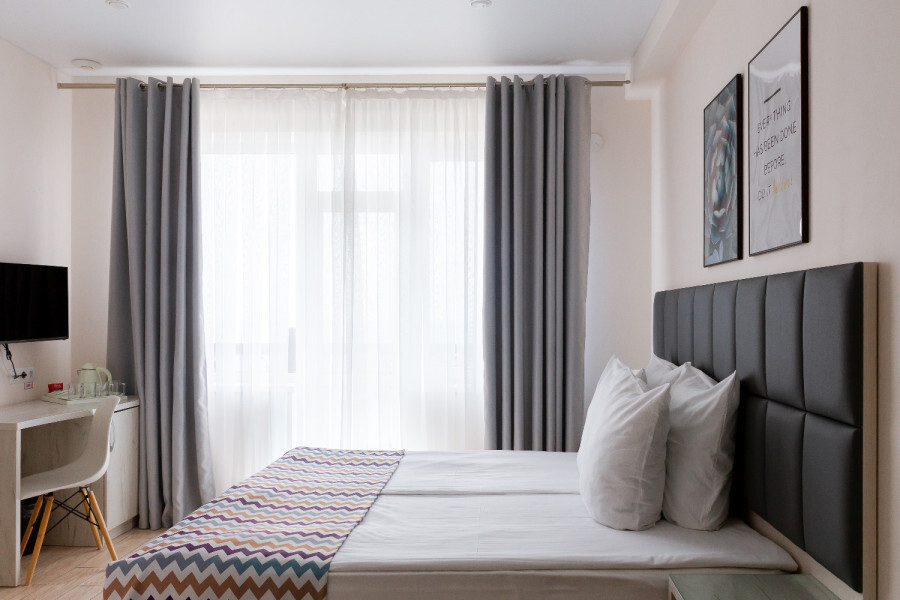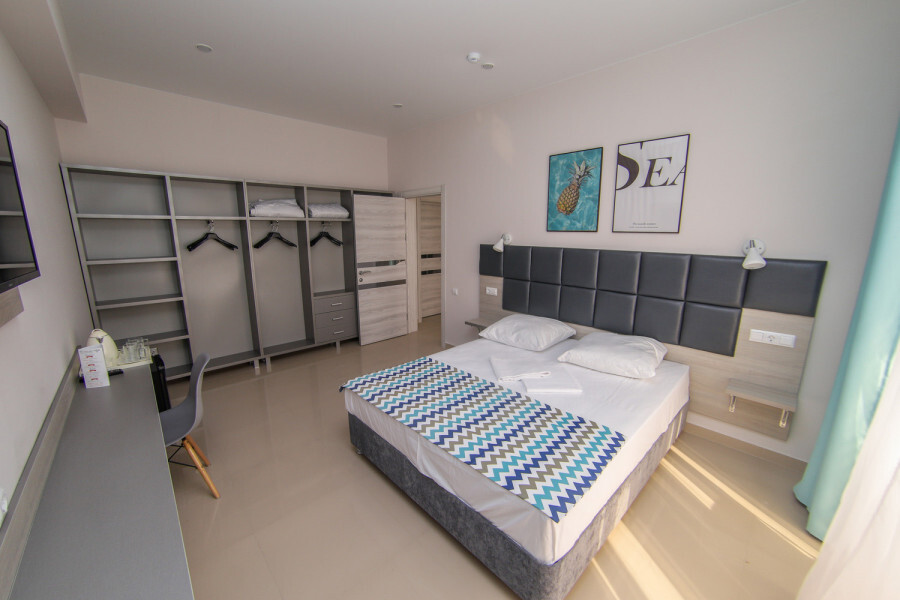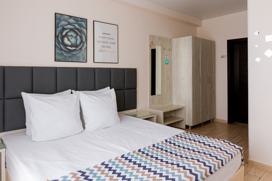 Двухместный номер с двуспальной кроватью. Вмещает до 2 гостей с возможностью дополнительного места для ребенка.