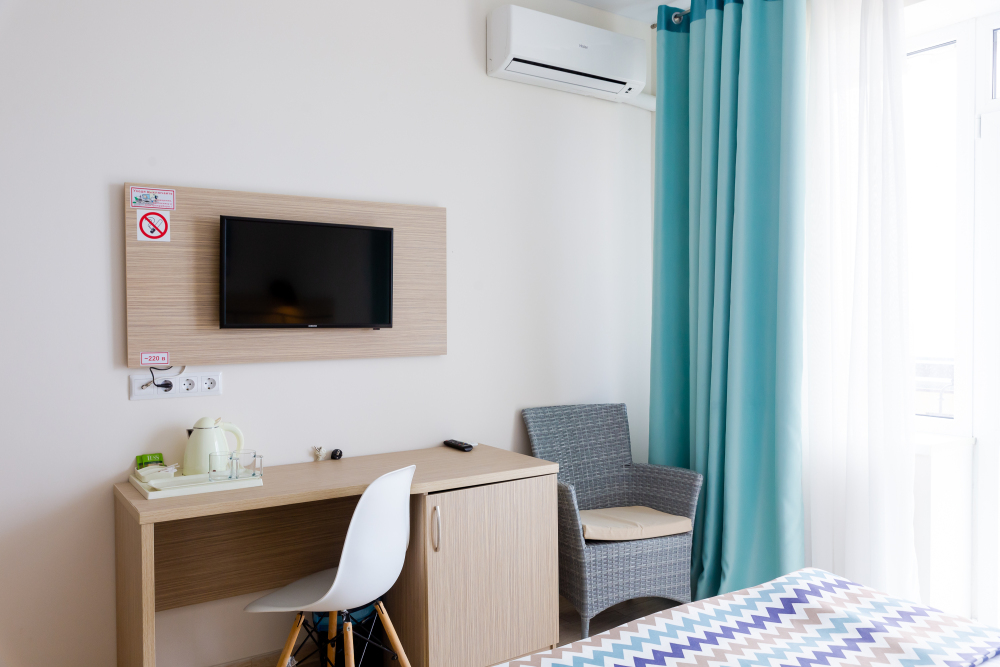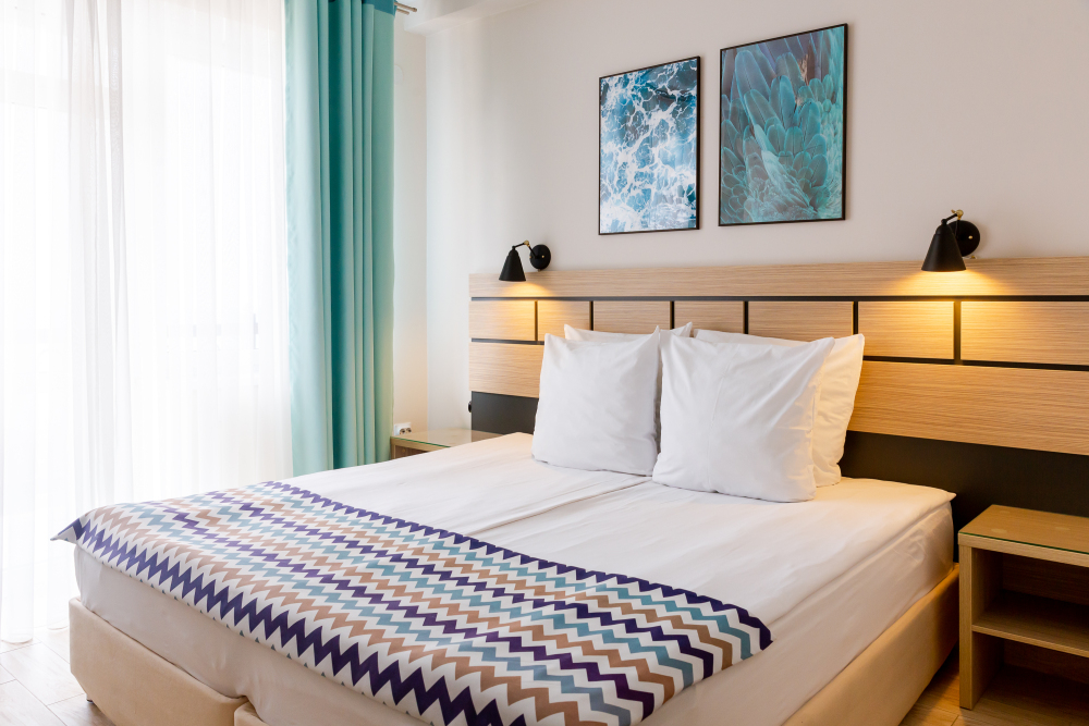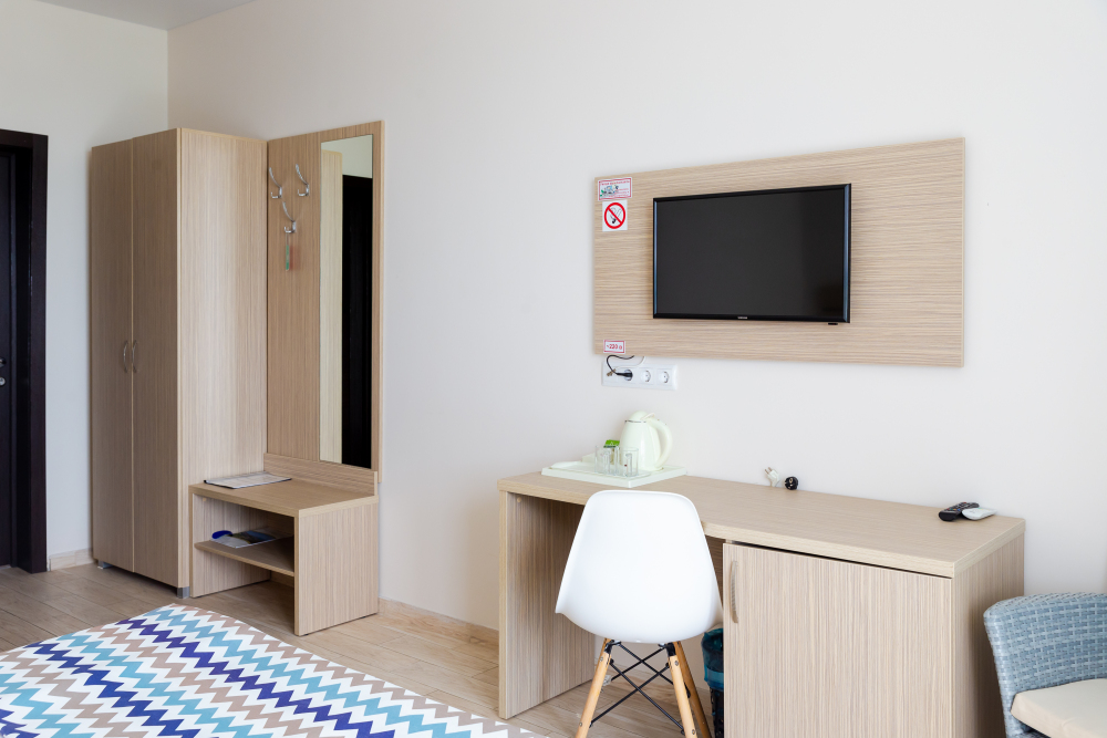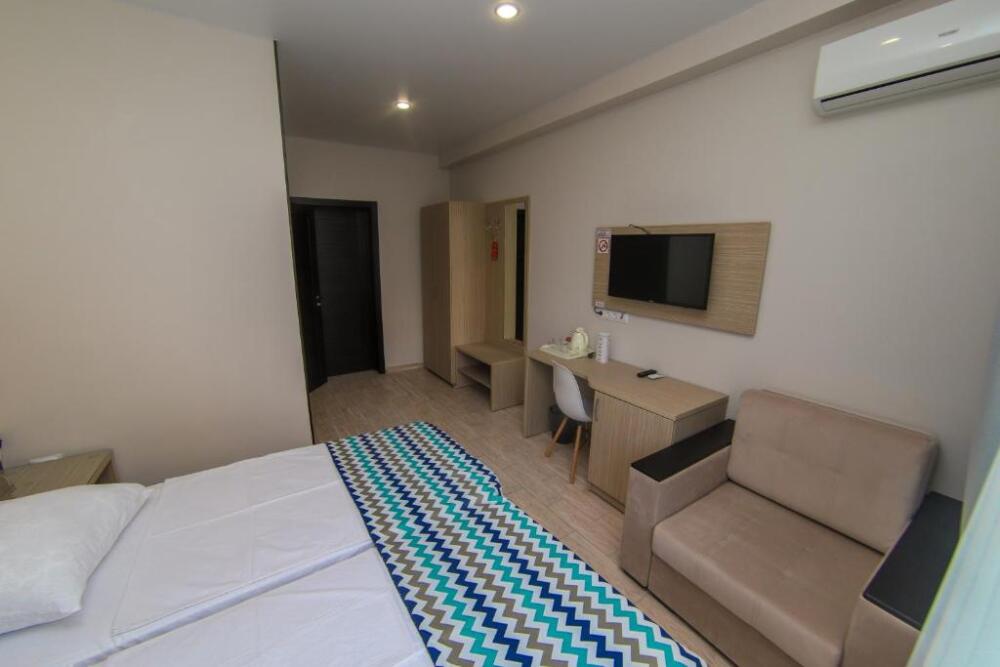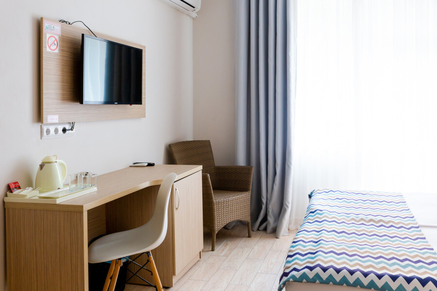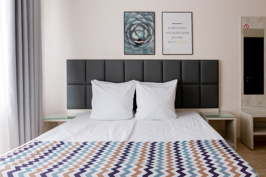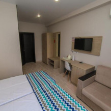Двухместный номер с двуспальной кроватью. Вмещает до 2 гостей с возможностью дополнительного места для ребенка.
