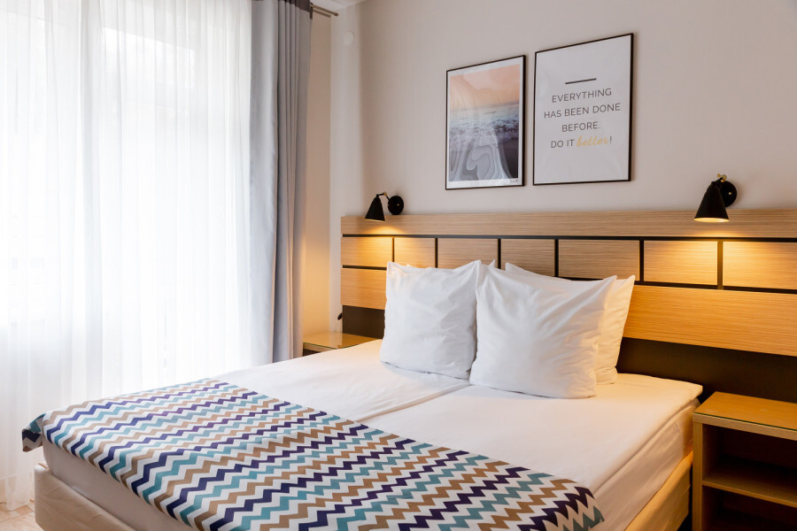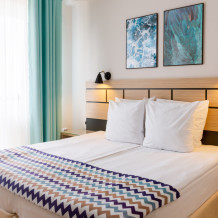 Двухкомнатный номер с двумя двуспальными кроватями. Вмещает до 4 гостей с возможностью дополнительного места для ребенка. Номер оснащен всем необходимым для комфортного пребывания.