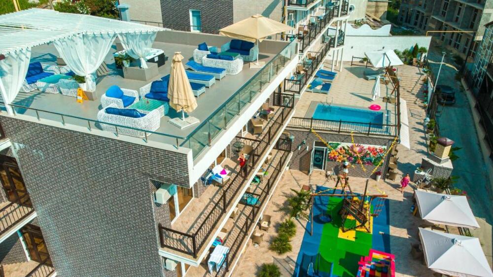 На территории отеля находится детская игровая площадка, батут, спортивная площадка, зона для любителей принять солнечную ванну и искупаться в бассейне.