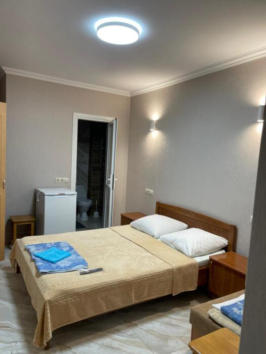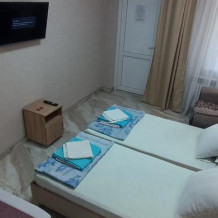 Гостевой дом «Марина» утопает в зелени виноградников и цветочных клумб. Вы всегда можете отдохнуть в тени винограда, сытно и вкусно покушать в столовой. Стоимость трехразового питания от 450 до 500 руб. на одного человека. К вашим услугам 2-х, 3-х и 4-х местные номера со всеми удобствами. Рядом находится аквапарк «Наутилус», рыночный комплекс «ТВС» и гипермаркет «Магнит». Все условия для детского отдыха - имеются необходимые документы и лицензии. Есть большая беседка и мангал для приготовления шашлыка, в продаже имеется элитное вино. На территории гостевого дома открыт продуктовый магазин. В мае, июне и сентябре - предоставляется возможность готовить на кухне.