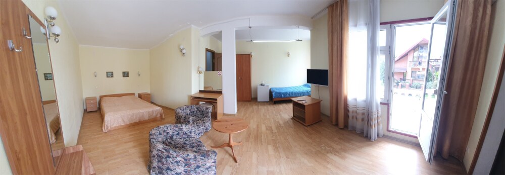 Номерной фонд представлен несколькими категориями, которые укомплектованы так, чтобы абсолютно всем гостям было максимально комфортно. В номерах есть собственная ванная комната, удобная спальная мебель и необходимая современная техника. Некоторые категории имеют вид на море. Также есть номера-апартаменты с собственной кухней.