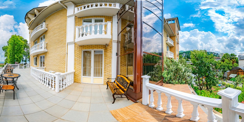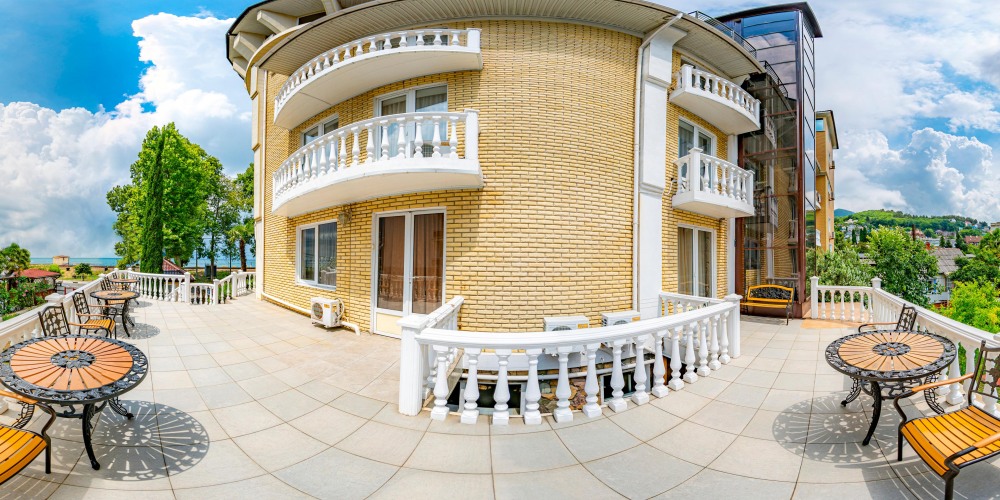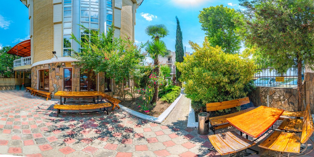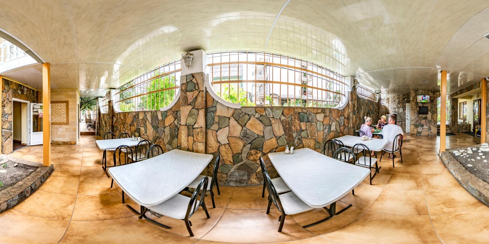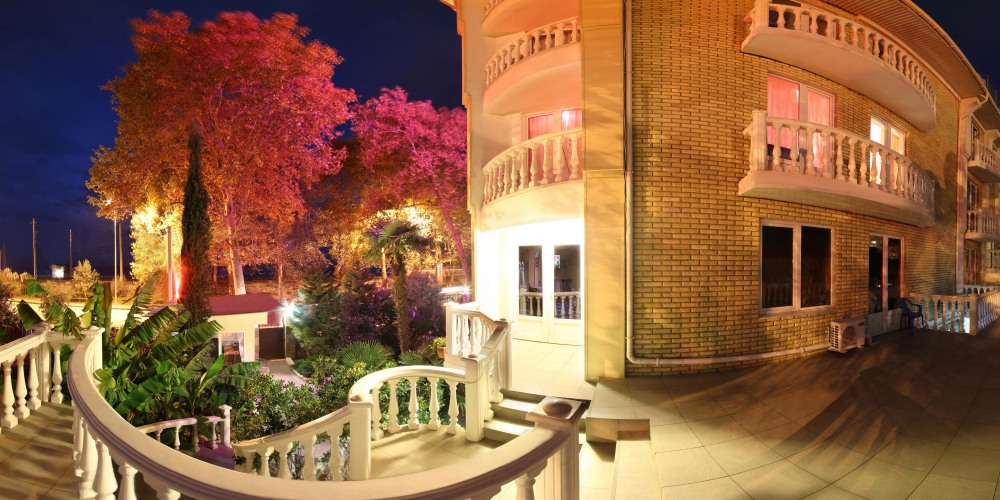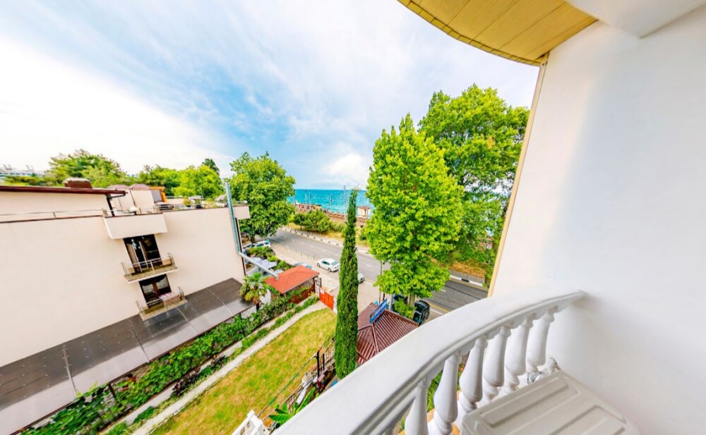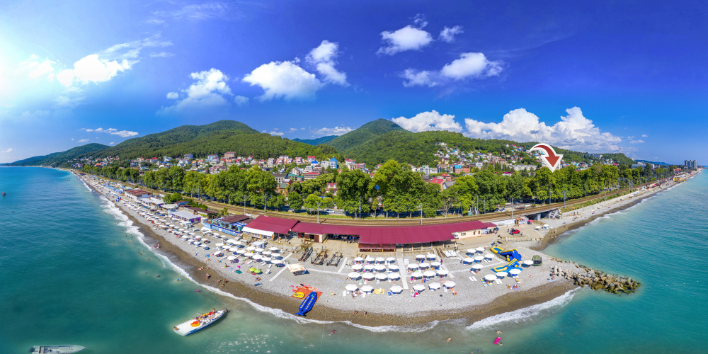 Особенно приятным сюрпризом стало кафе при отеле, где мы наслаждались вкусным шашлыком и хачапури. Вечерами прекрасная возможность отдохнуть на веранде, расположенной на лежаках, открывающих завораживающий вид на море.