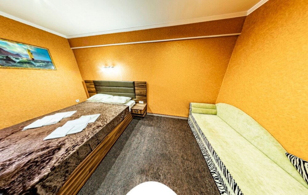 Администратор или он же хозяин просто хам! Разговаривать с ним культурно нельзя! Как - будто попала в 90- е., бандитские выходки у него, аж страшно общаться с таким. Поселил нас в номер, где ничего не работало: кондиционер был без крышки и режимы не переключались ,работал , как трактор на одном режиме самом сильном режиме. Туалет не смывал, нужно было каждый раз поднимать полностью крышку, чтоб он смыл. Телевизор не работал! Ребенок плакал, не мог смотреть свои любимые мультики. В номере не убирались ни разу. Если ты в номере находился, то забирали мусор, а если ушел, то все ,мусор оставался . Завтрак был ужасным, каши на воде, салаты тошнотворные,сосиськи самые дешевые,есть их нельзя! Отель находится в ужасном месте, железная дорога и автомобильная трасса находятся совершенно рядом 100метров. Стук колес поездов, выхлопные газы от автомобильной артерии, это ужасно! Мы там с внучкой смогли прожить только 4 бессонные ночи и съехали в другой хороший отель. Когда я решила покинуть отель тут то и началось ужасное, этот бандит администратор не захотел отдавать мне мои деньги за не прожитые 12 ночей, и за Форенто! Он измывался надо мной очень долго! Пока моя дочь не позвонила ему и не пригрозила ему полицией! Тогда он отдал мне не все деньги, высчитал еще одни сутки мной не прожитые и за форенто. Потом он схватил наши вещи и начал выгонять! У внучки была рвота в это время от их завтрака! Она плакала , ей 9 лет! Аон вот так без жалости все делал! Мы уехали в другой отель, где нас культурно и по доброму встретили! И наконец- то мы начали отдыхать нормально! Спать на раздельных кроватях, очень удобных и не дышать газами. Там он поселил нас на одну кровать! Это просто ужас! Желаю всем хорошего отдыха подальше от этого , если его еще можно назвать так , отеля! Да, и еще , лифт постоянно ломался! И я , мне 71 год приходилось ходить пешком на 3- ий этаж! С моим больным сердцем! Счастья и здоровья всем !