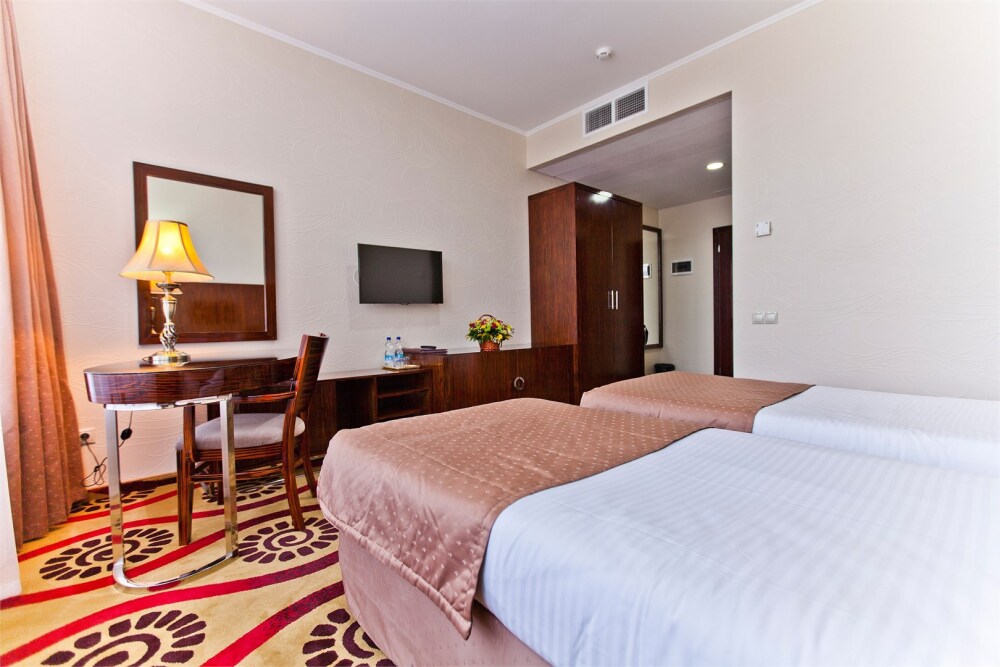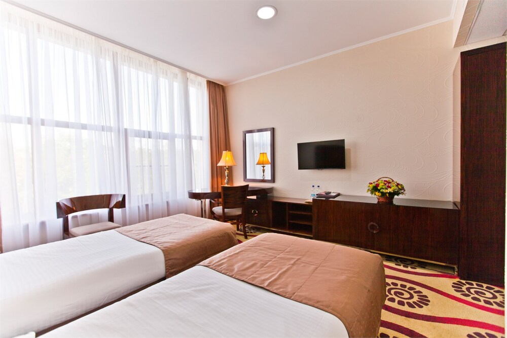 В номере: Двухспальная кровать или две односпальные, прикроватные тумбочки, ЖК-телевизор, телефон, письменный стол, мини-бар, сейф.